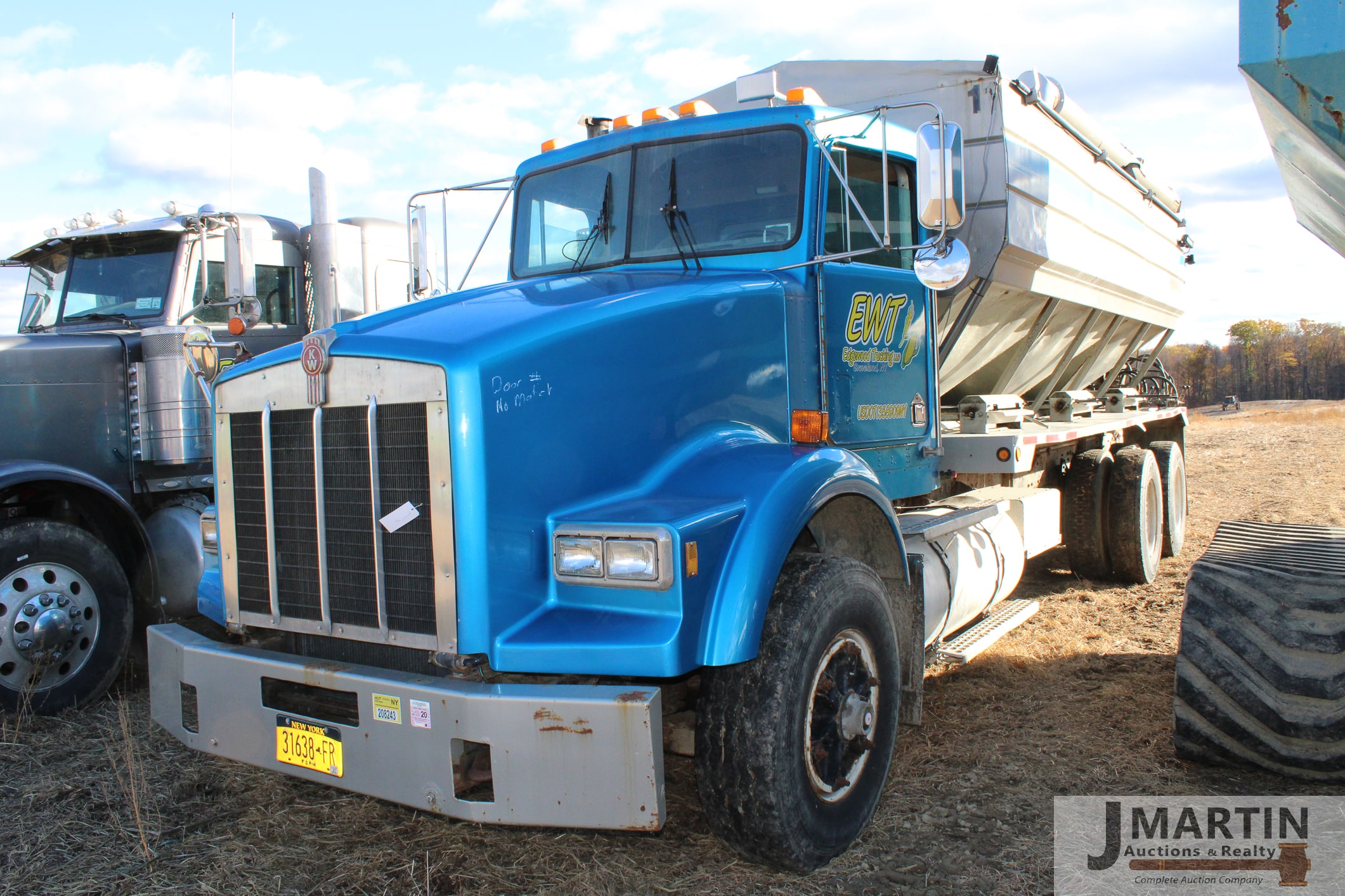 Kenworth Semi tractor w/ 20′ 3- bin tender box, 15′ stinger, 14,579 mi, 8 speed, PTO Cummins 400 engine