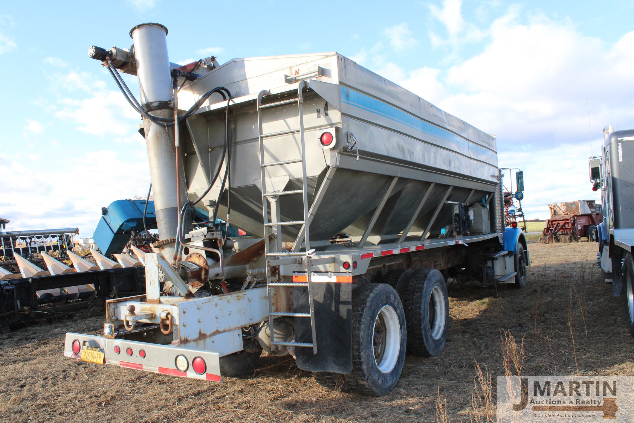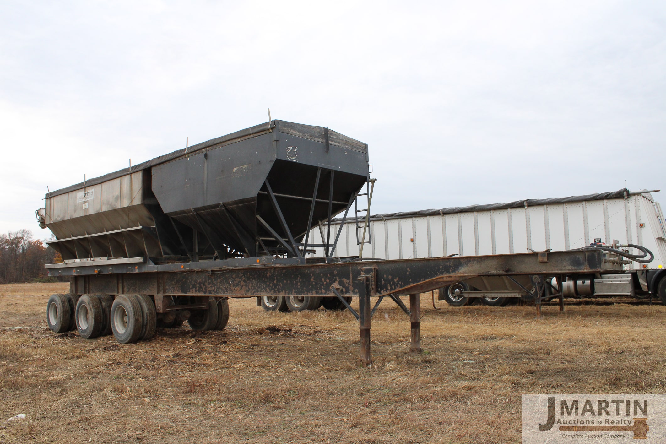 2007 Mac 48′ Semi Trailer Tender w/ air ride, tri- axle, 11R22.5 tires, 17ft stainless rear hopper, 12 ft front hopper with tarp on both. 12 ft rear stinger.VIN#5MADS444770011336