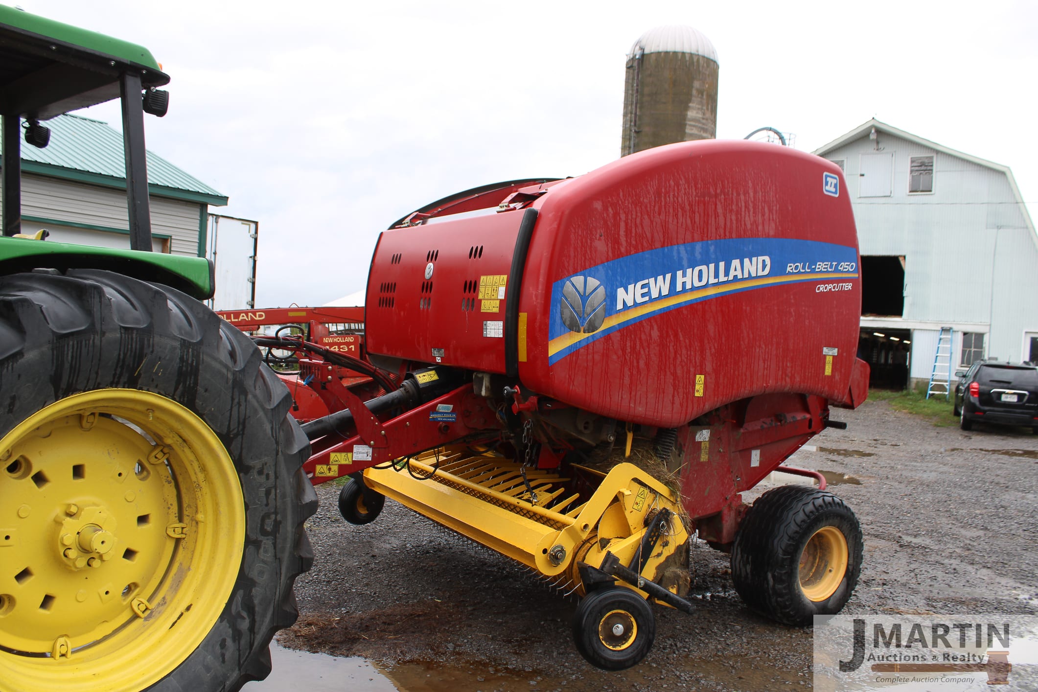 NH Roll-Belt 450 round baler w/ roto cut, net wrap, 540pto, 12,700 bales