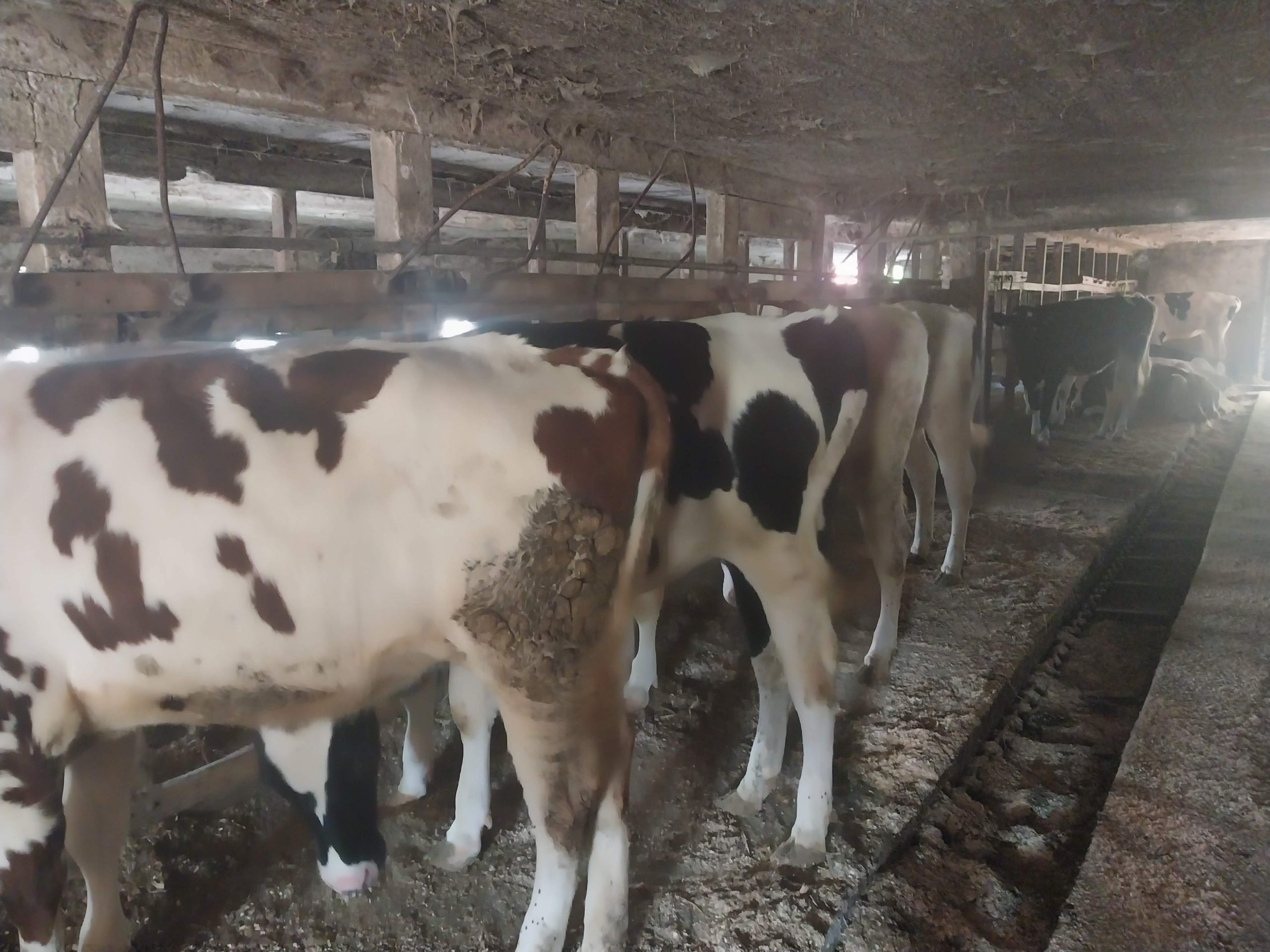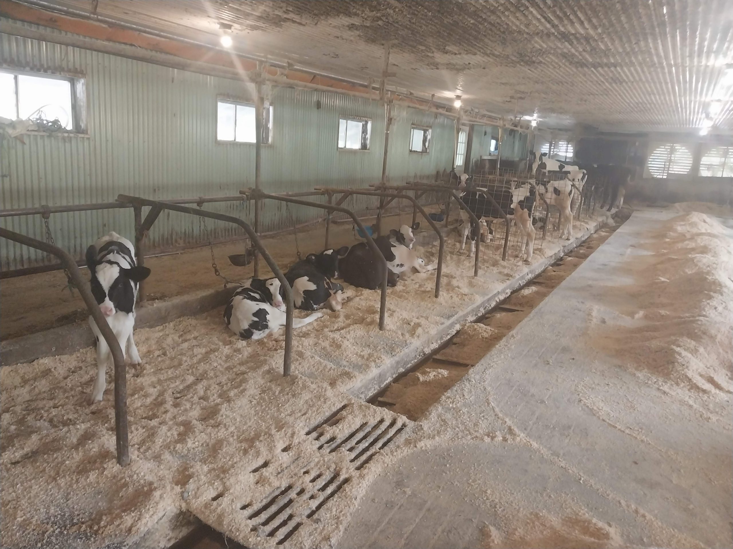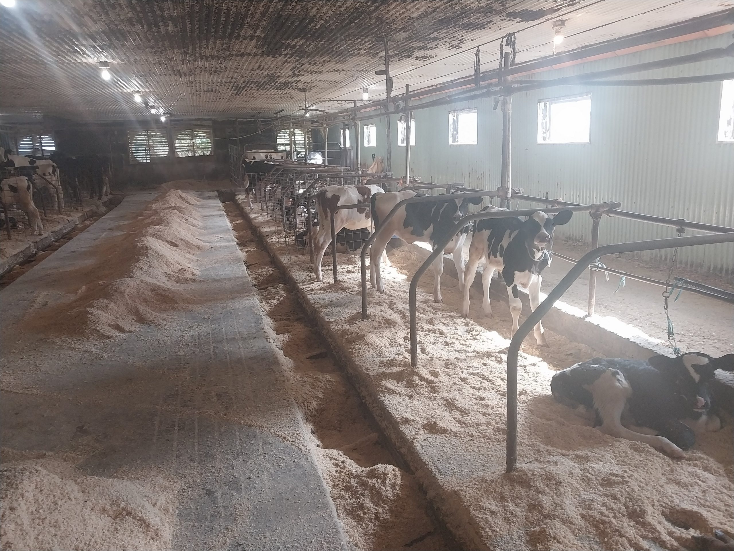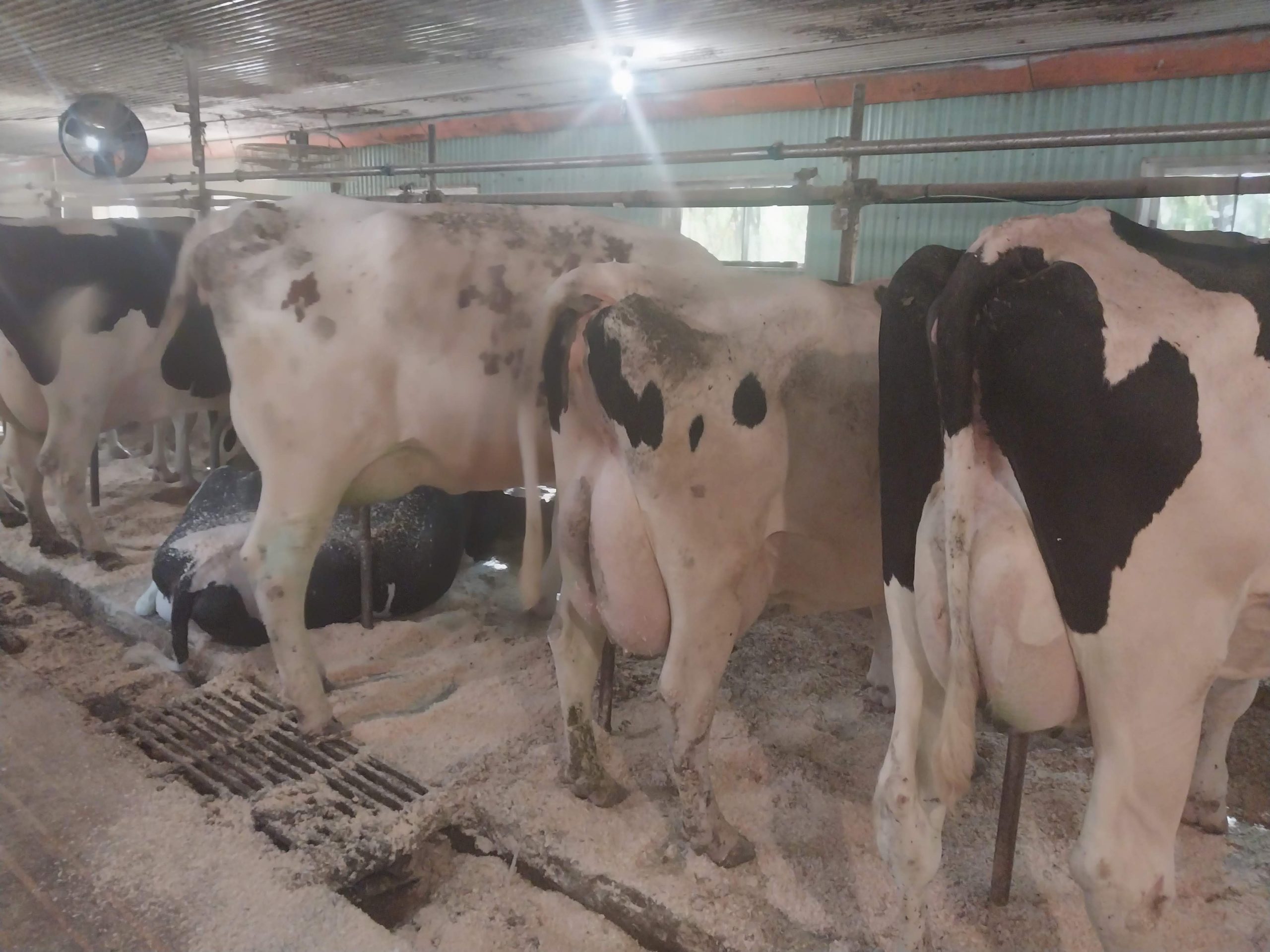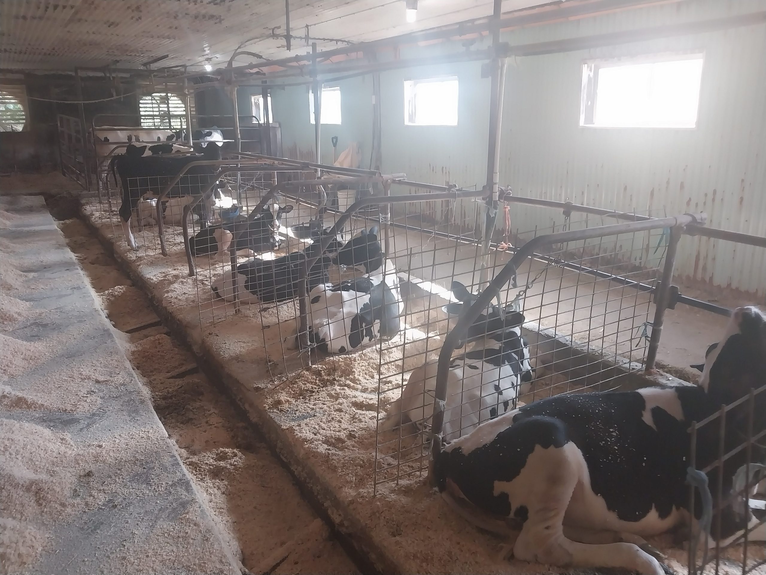 130 Milking- all stages of lactation. milking 80# in tank, 30 bred heifers, 50 open heifers. AI bred and sired, vac twice a year w/ 10 way. tie stall diary, heifers raised in pen pack/free stall