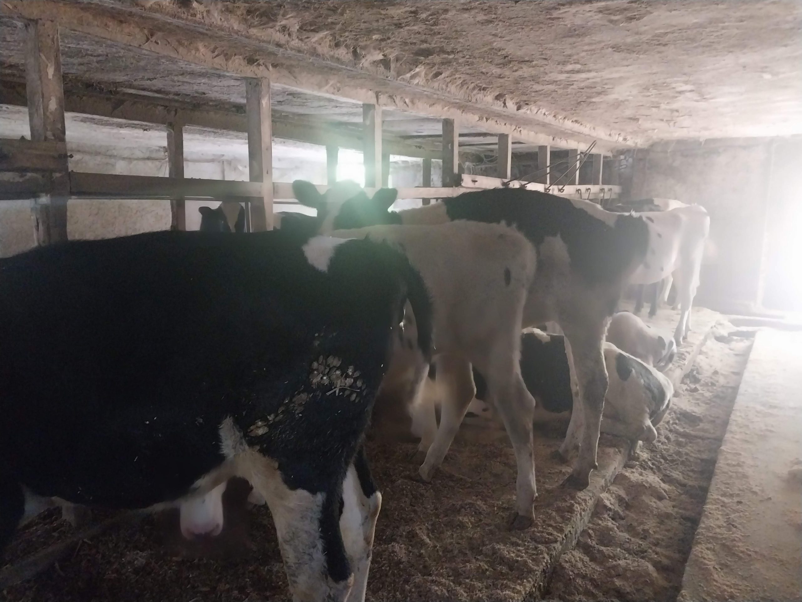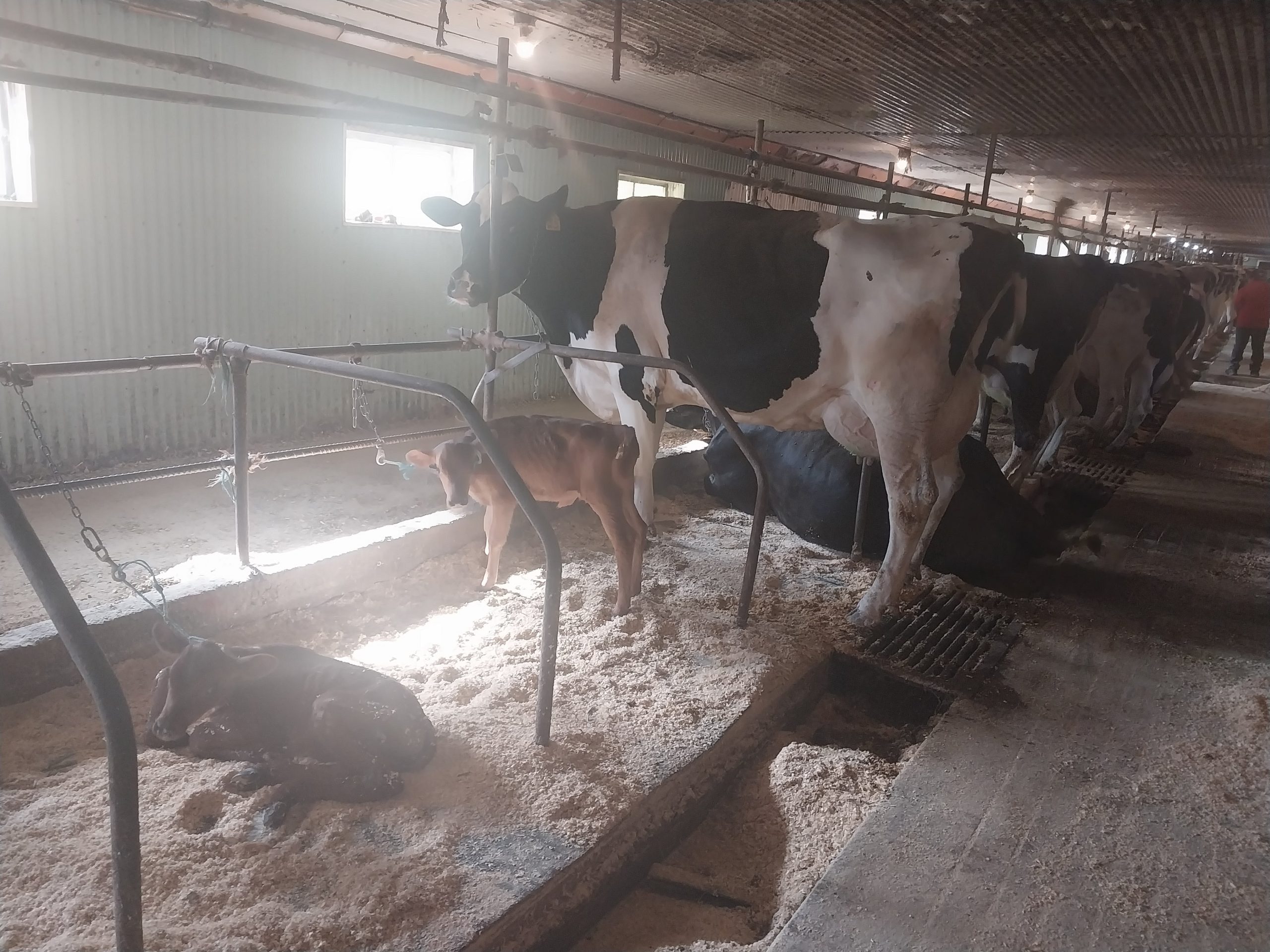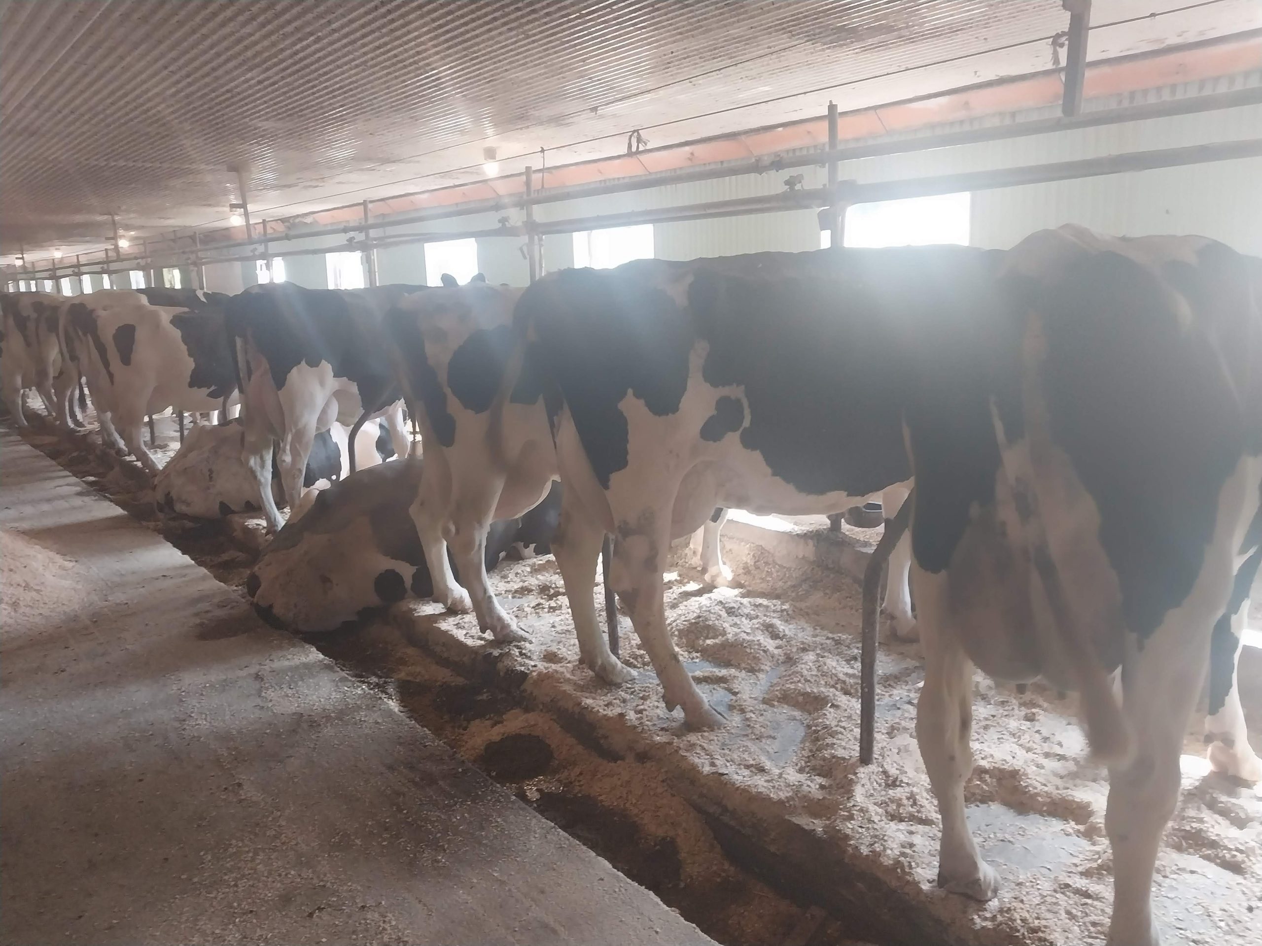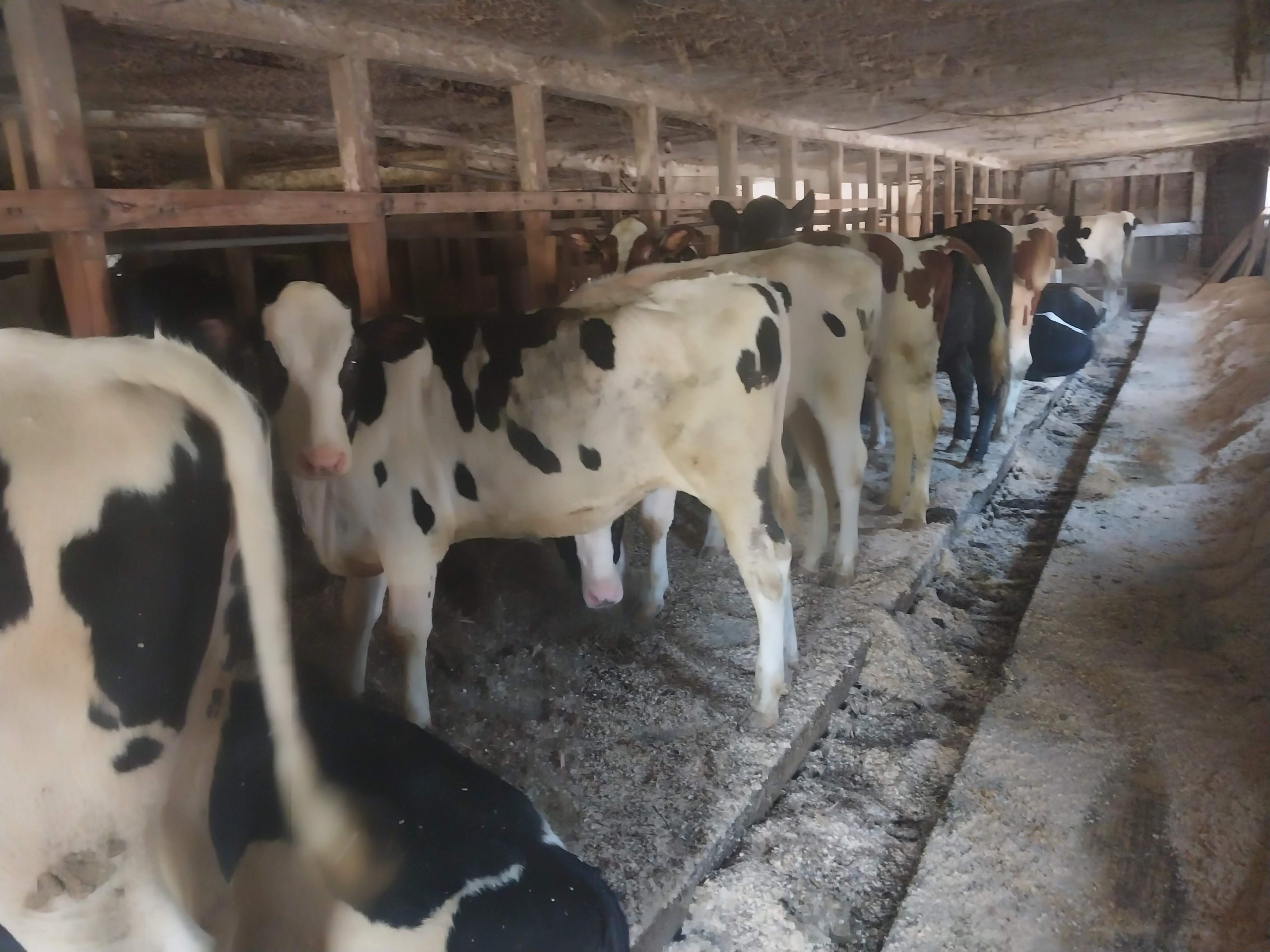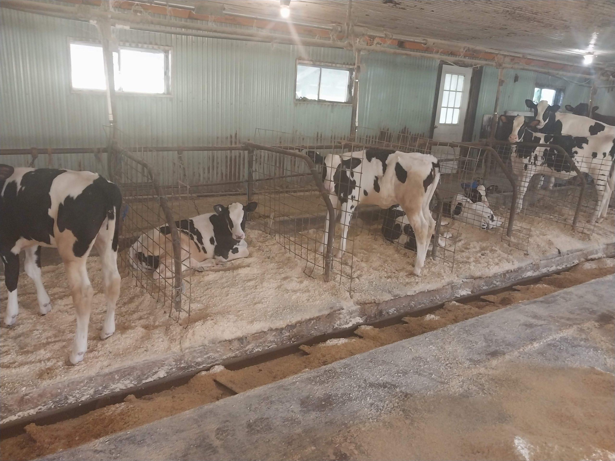 130 Milking- all stages of lactation. milking 80# in tank, 30 bred heifers, 50 open heifers. AI bred and sired, vac twice a year w/ 10 way. tie stall diary, heifers raised in pen pack/free stall
