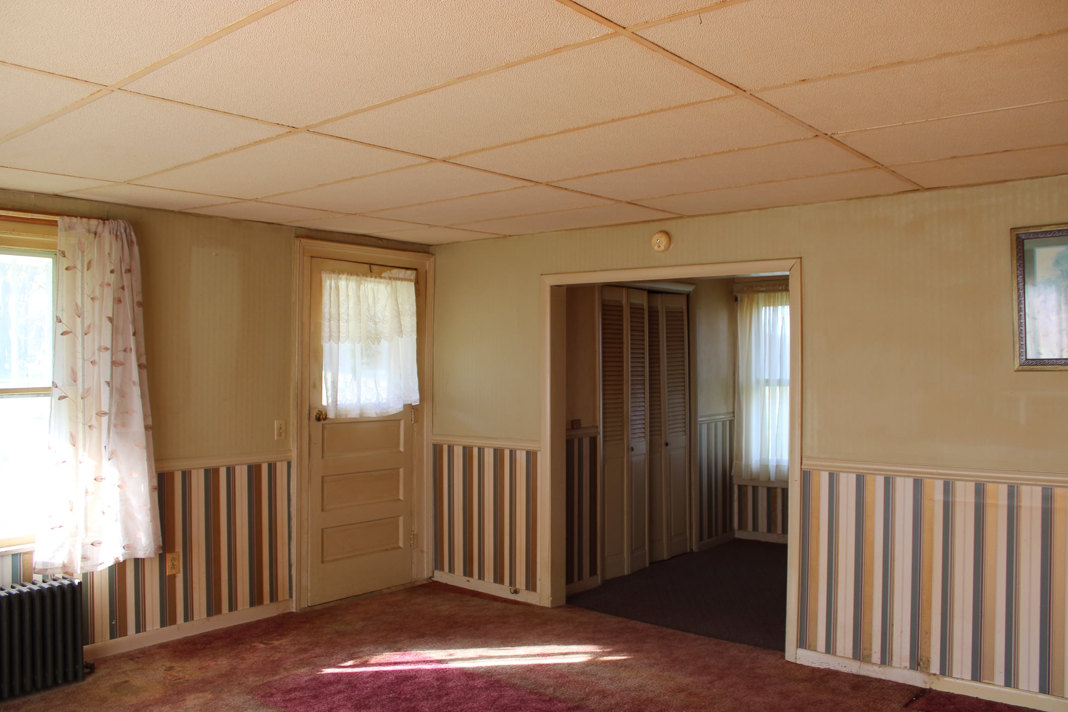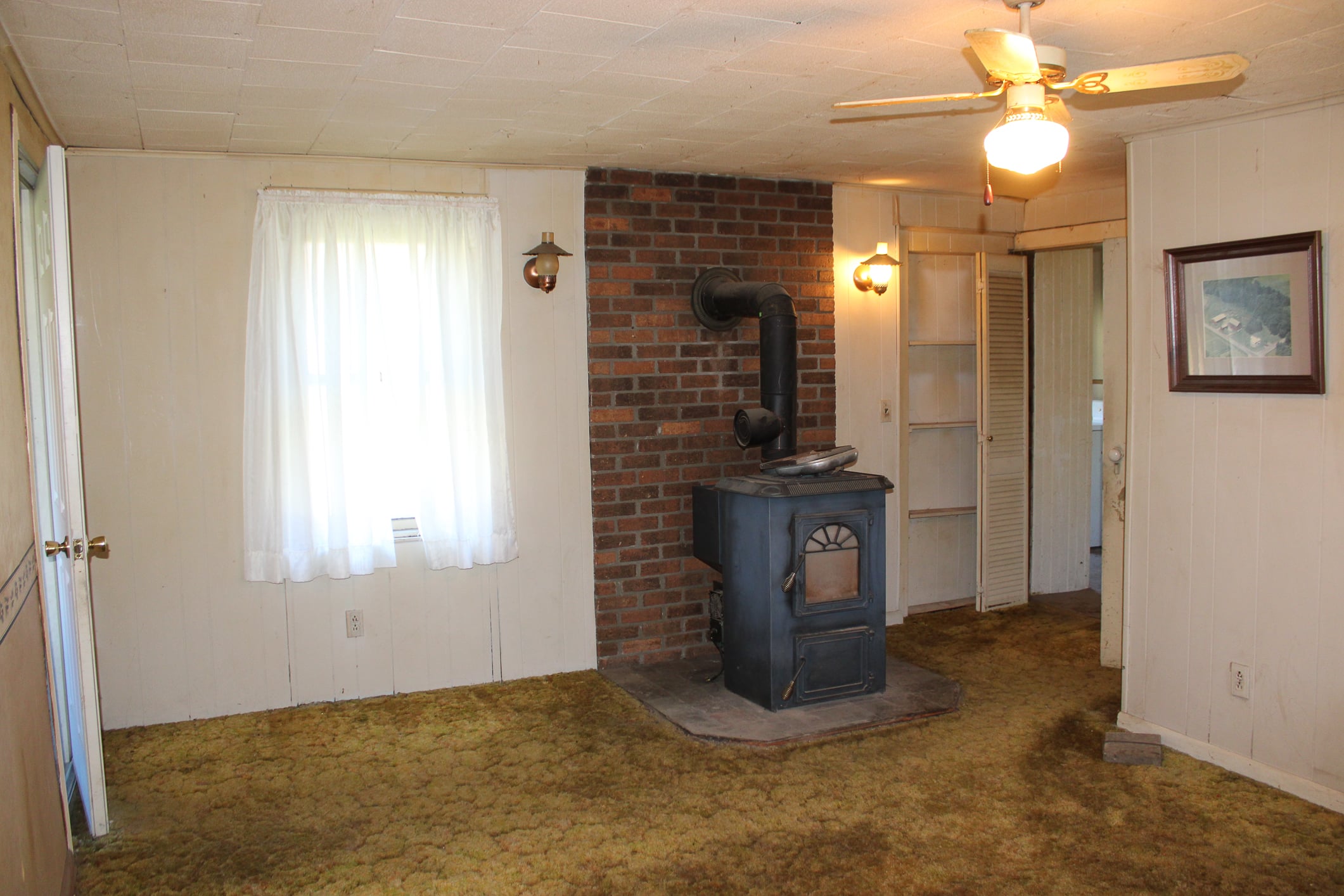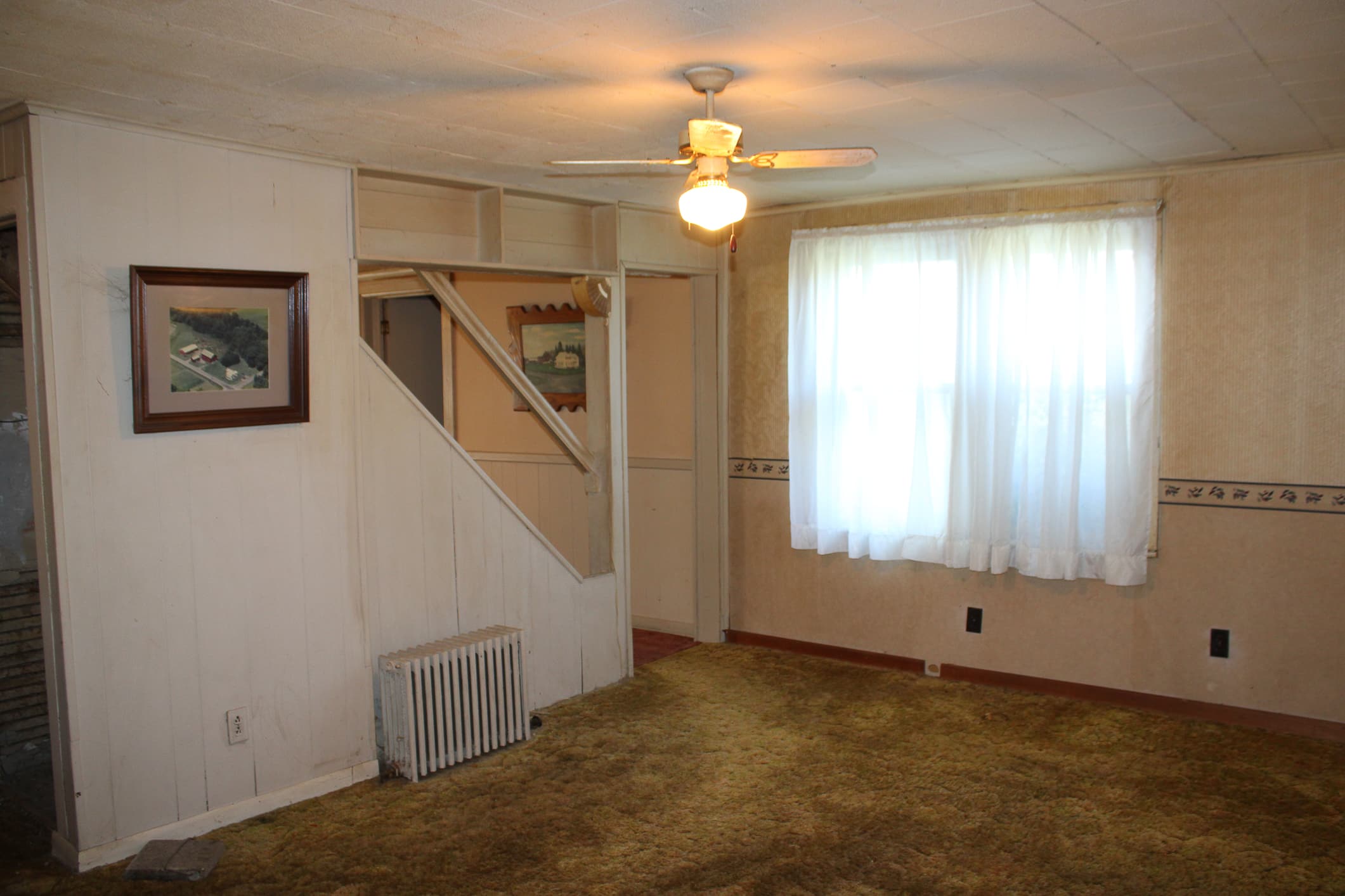 The interior includes a formal sitting room with a bay window, a spacious living room, and a kitchen that opens to the dining area. You’ll also find large amounts of closet space throughout, a downstairs full bathroom, and a laundry room for convenience. The home is primarily carpeted and includes a full cellar and an unfinished mud room, giving you ample space for storage and future projects. Heated by hot water and a coal stove, with a private well and septic system, the home offers comfort and rural privacy.