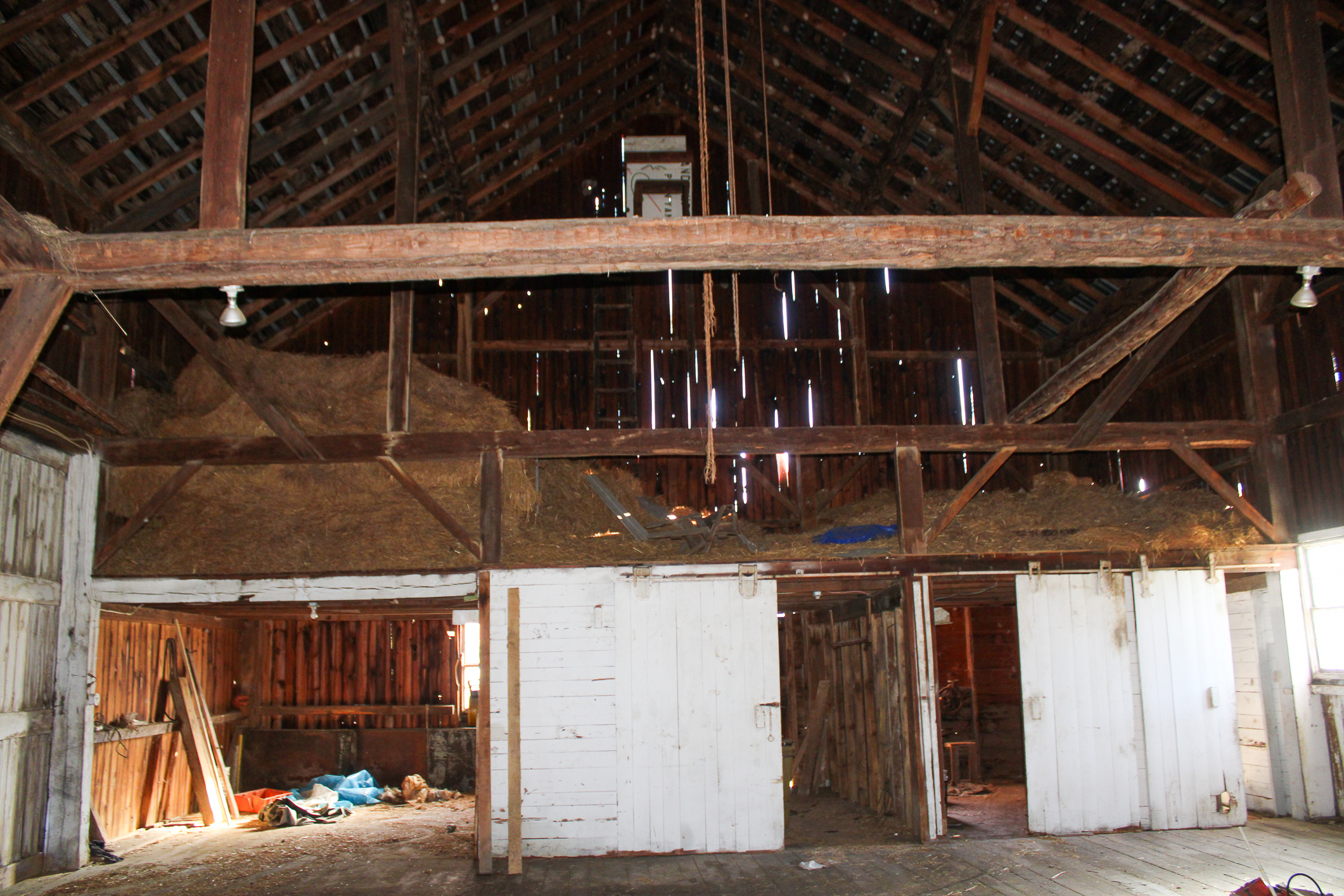 Outside, the property features a pine grove and a large 60′ x 32′ bank barn, ideal for agricultural use, storage, or a workshop. Property has 2 carports off Yatesville Rd, and gravel driveway by the barn off E Sherman Hollow Rd.