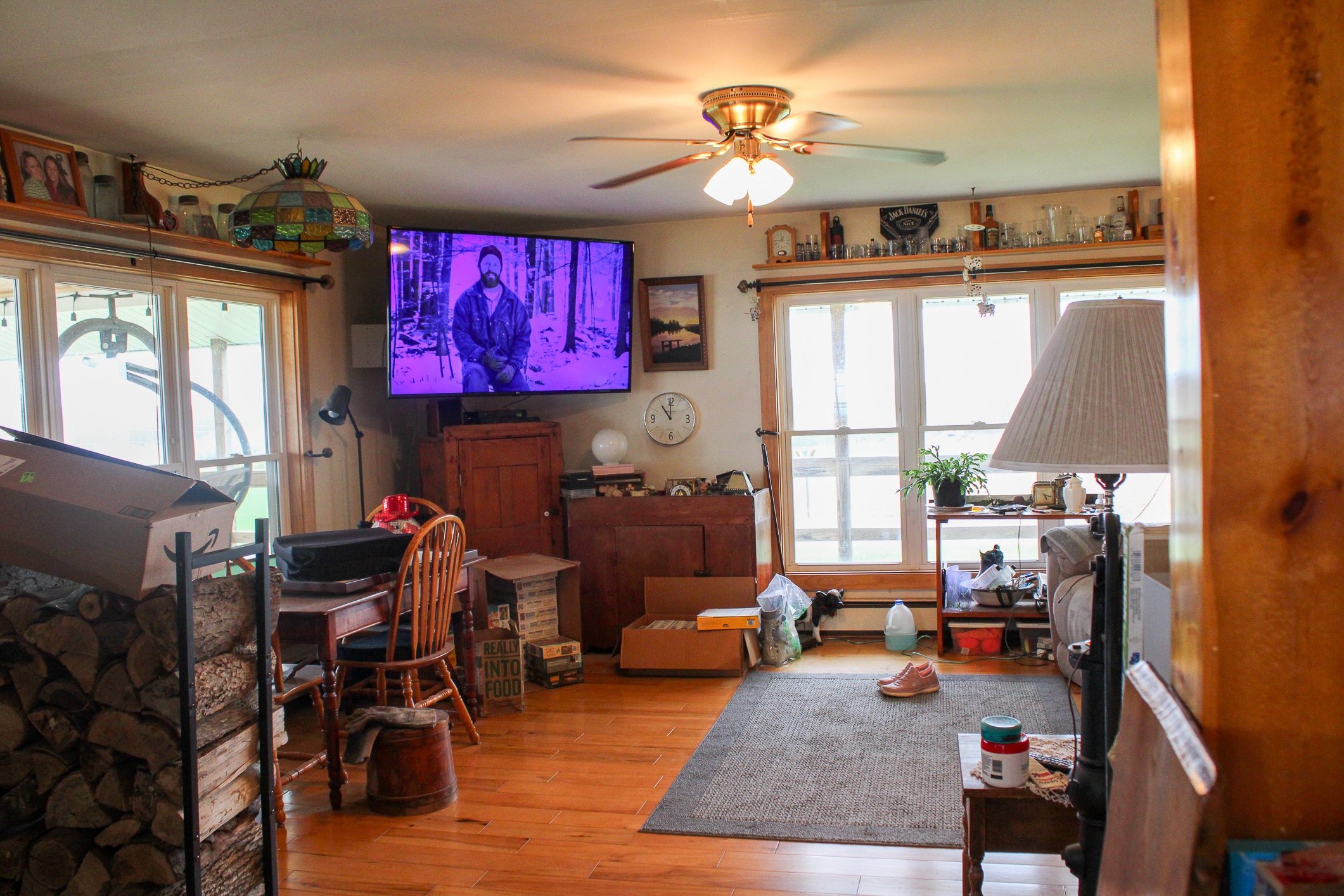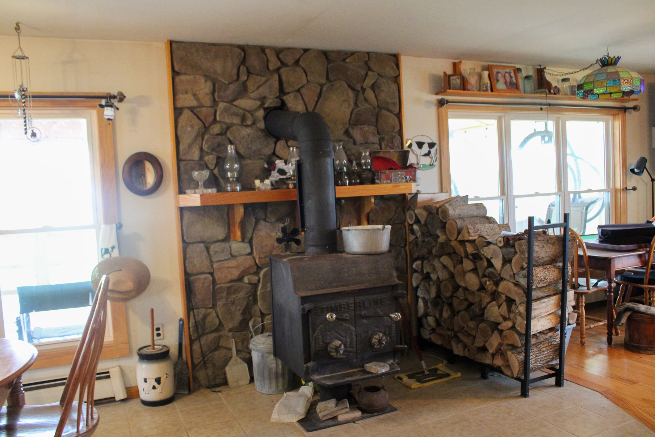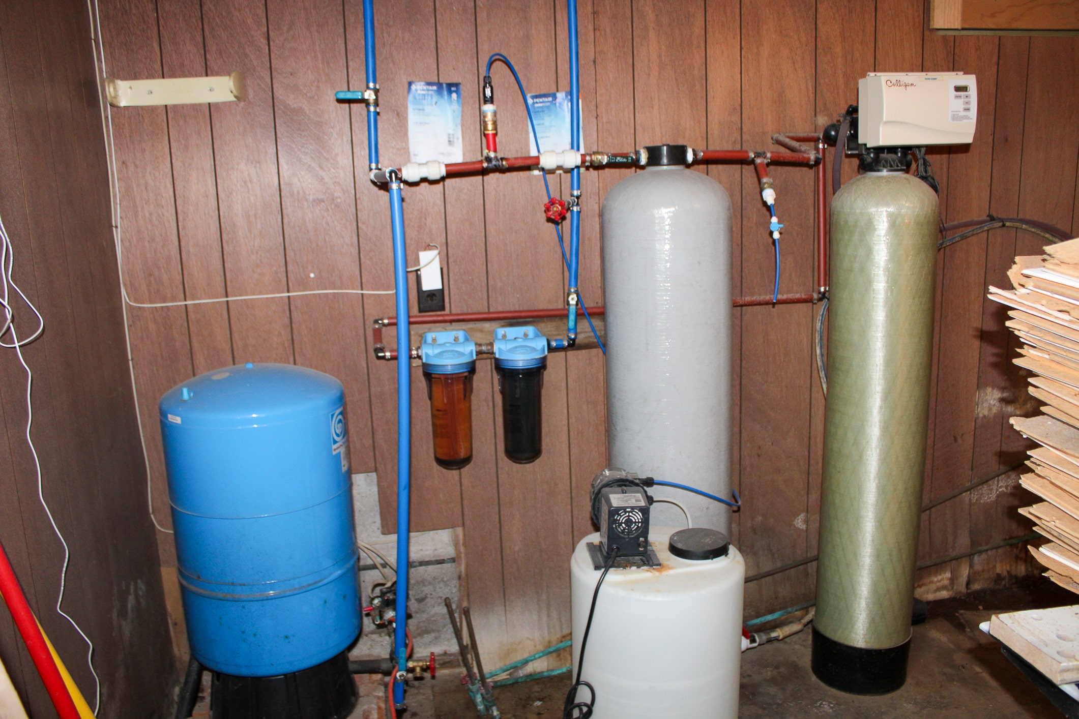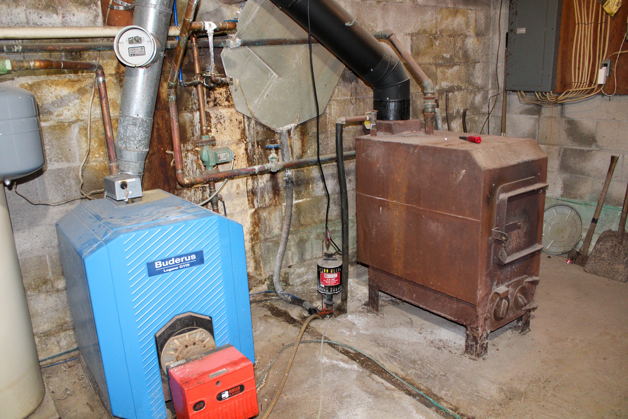 The home offers multiple heating options, including hot water baseboard heat, a wood stove, and a wood burner, providing flexibility and efficiency. A partially finished basement expands the usable space with concrete floors, multiple work areas, food and wood storage rooms, and an exterior 48-inch access door, along with a non-working bathroom area that offers potential for future completion. Utilities include a Mulligan water softener system with chlorinator, two wells (one 180′ sitting on the north side of the property, one 35′ hand dug on south side of property), a septic system (pumped two years ago), and a 26kW wired propane generator for backup power. Plumbing was updated approximately six years ago, and a new water heater was installed in 2010.