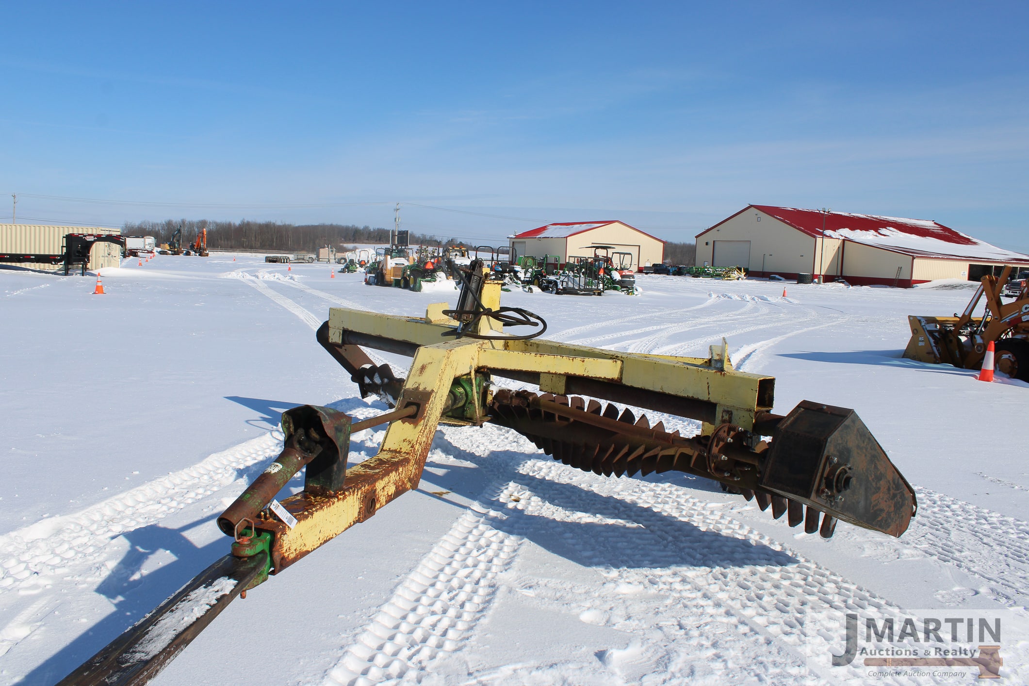 3-Unused JCT skid mount post hole auger w/ 10″, 15″, 20″ bits