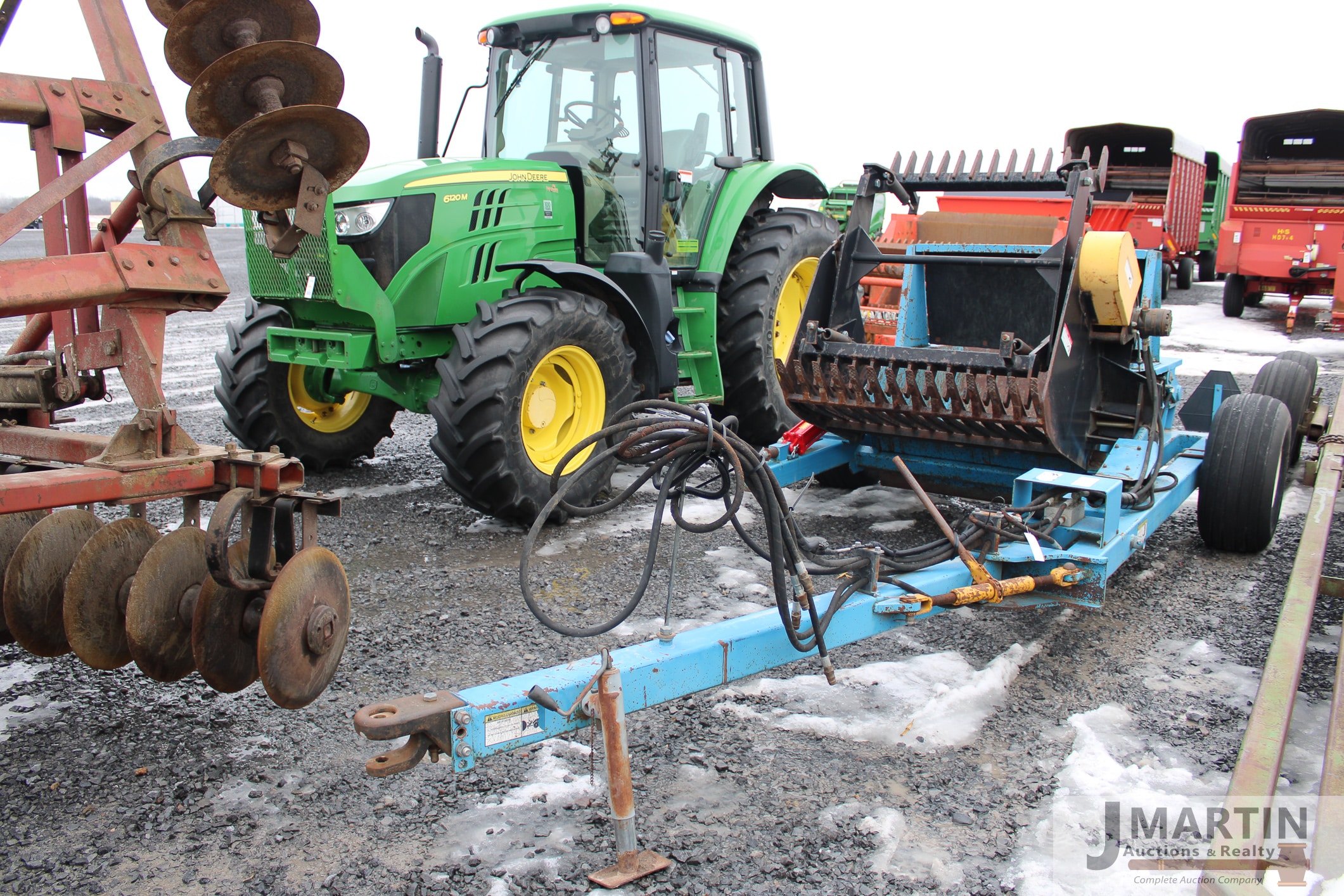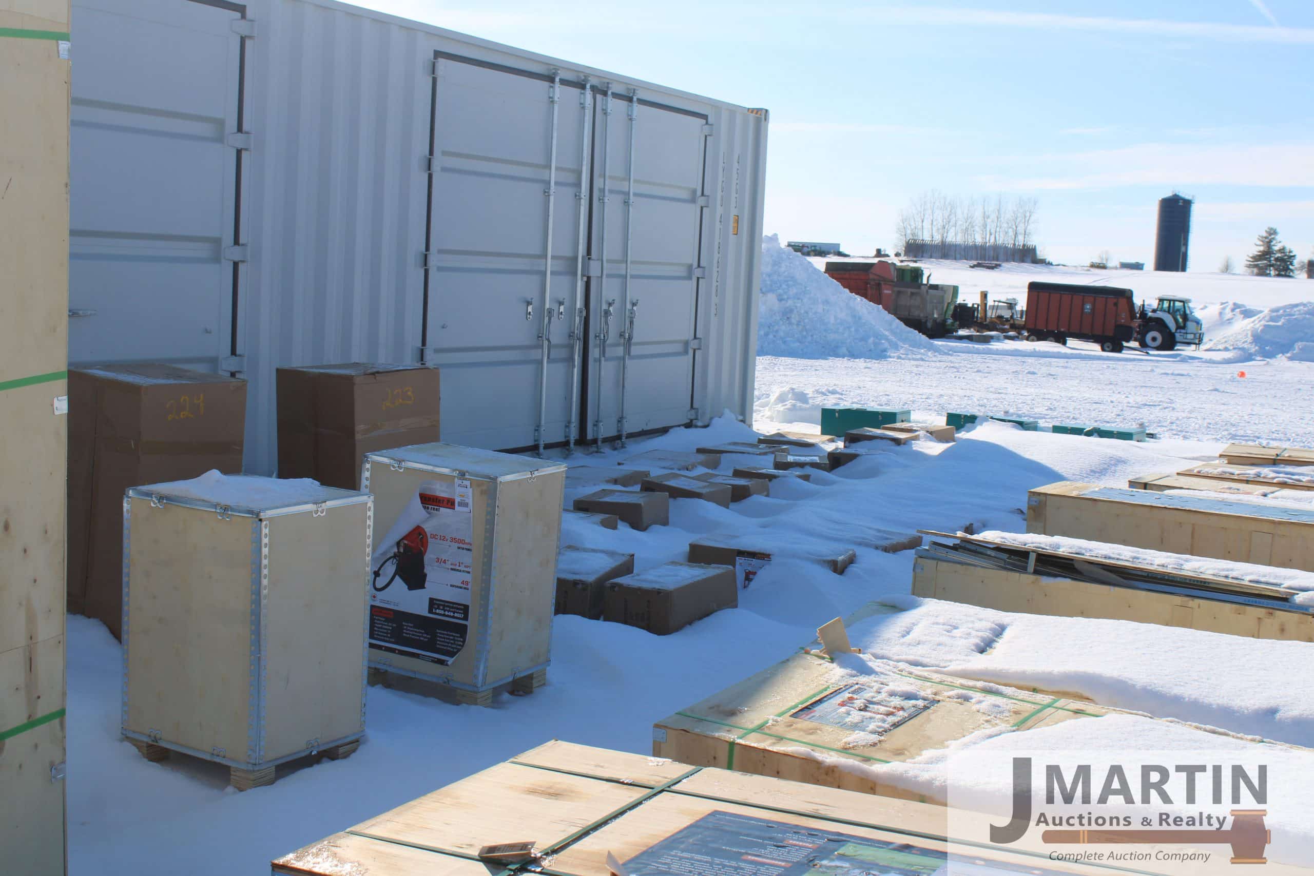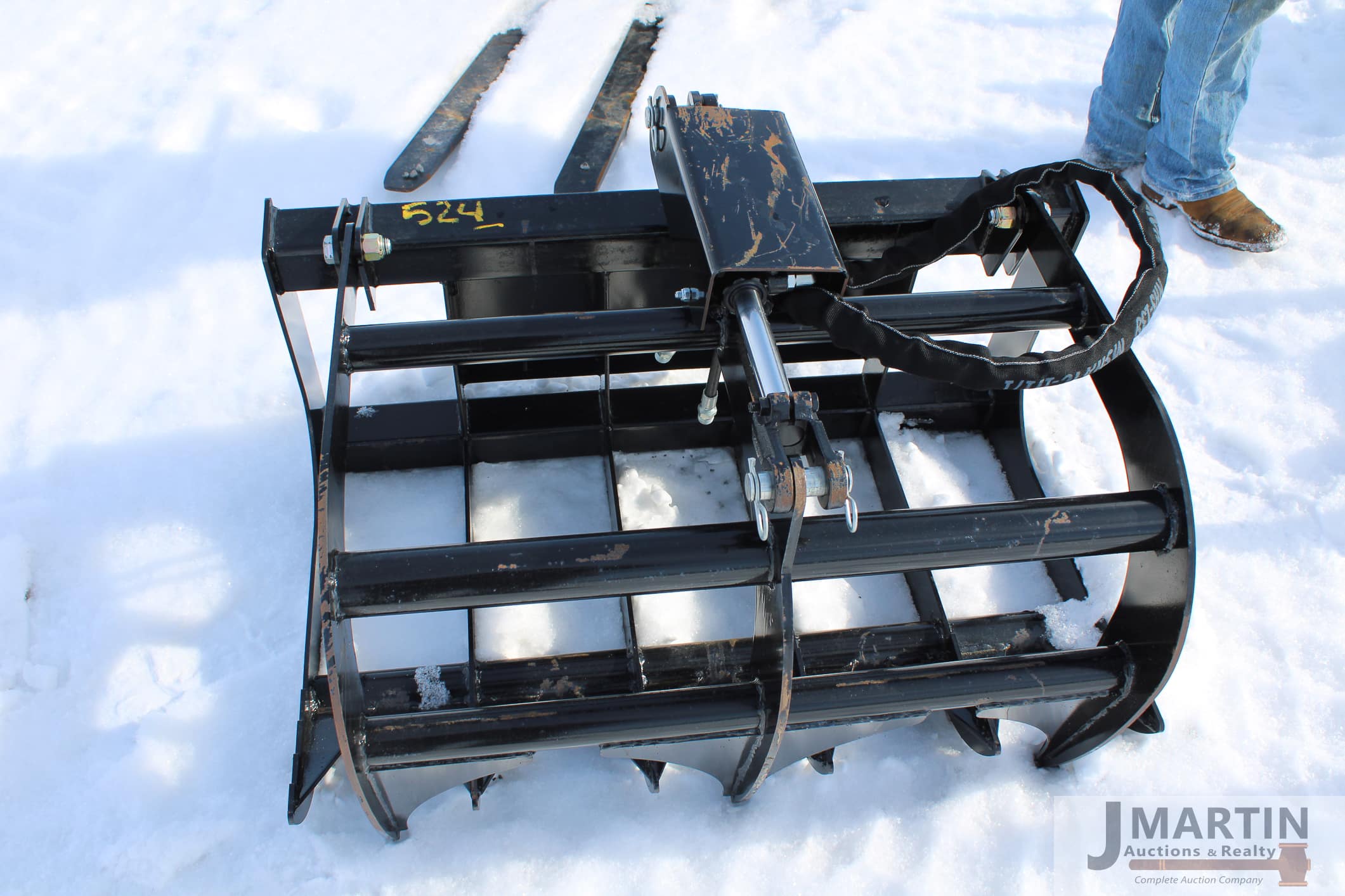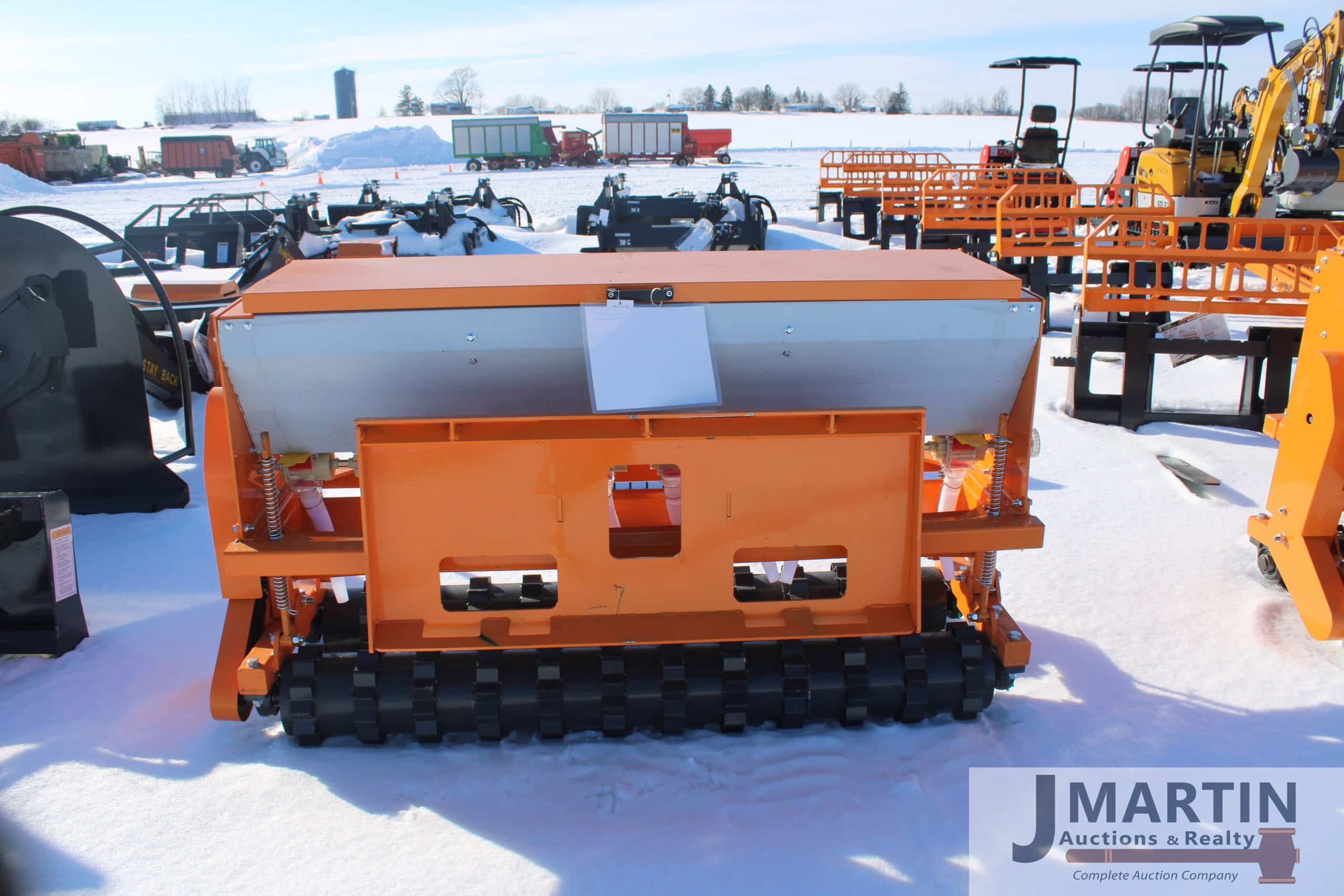 Large amounts of unused skid mount buckets, pallet forks, grapples, mowers, augers, tillers, bale grapples, logging winches, etc