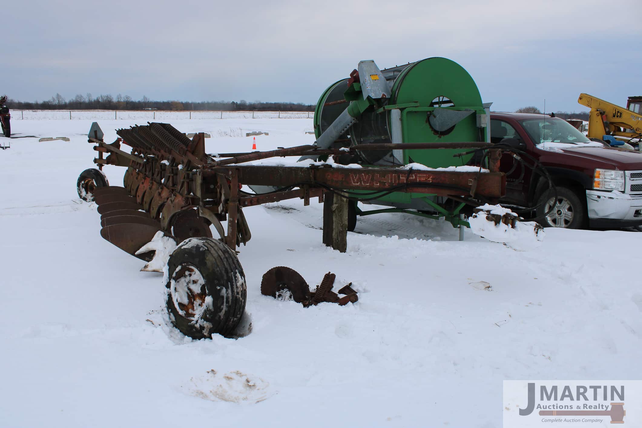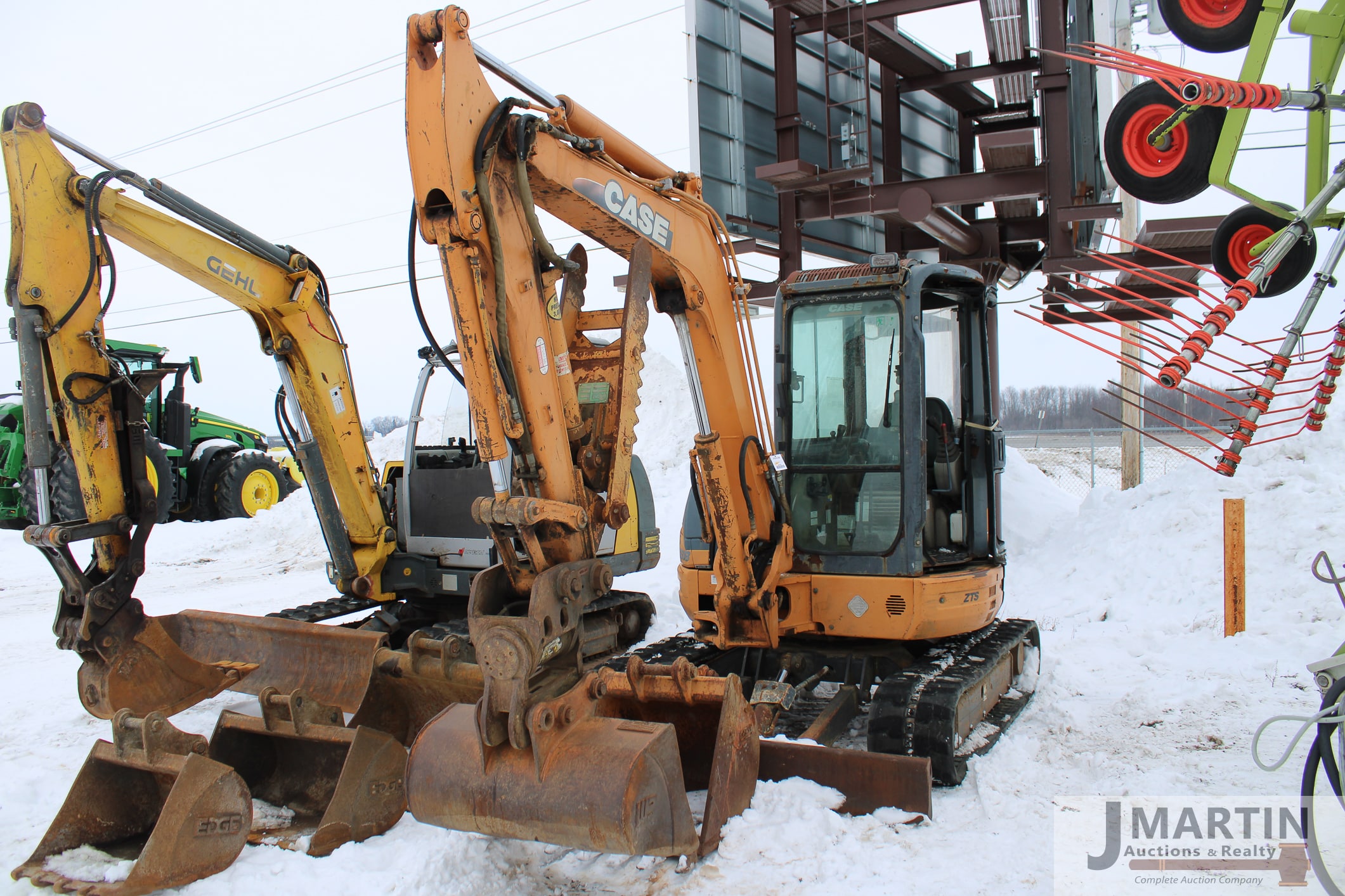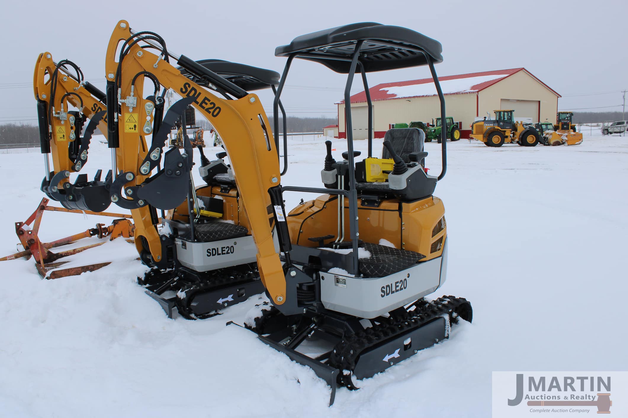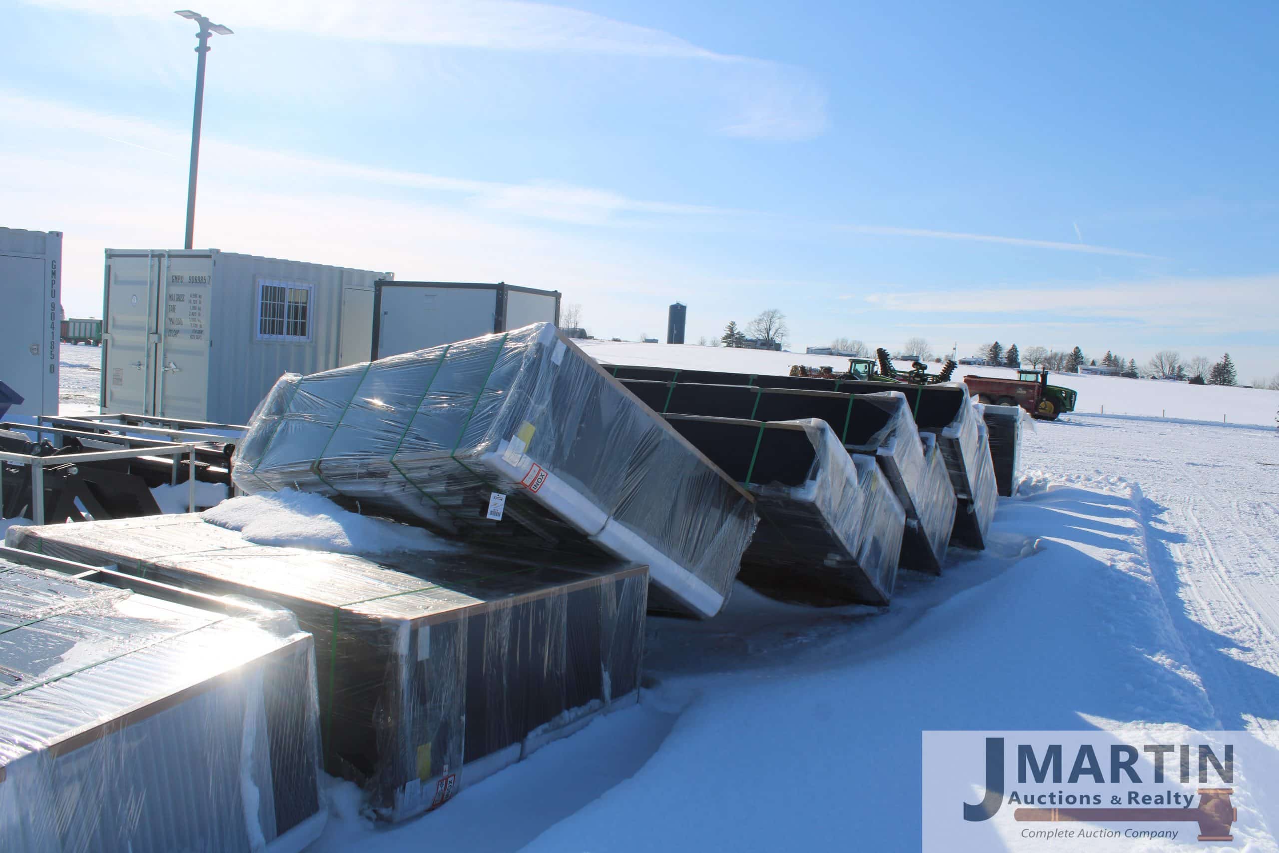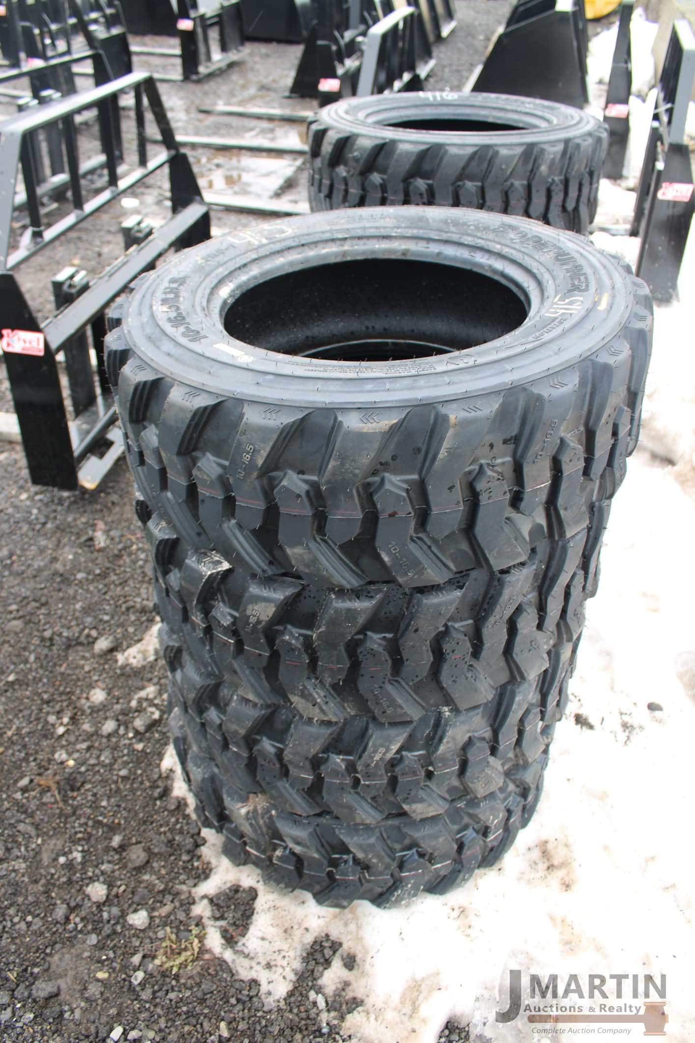 Large amounts of unused skid mount buckets, pallet forks, grapples, mowers, augers, tillers, bale grapples, logging winches, etc