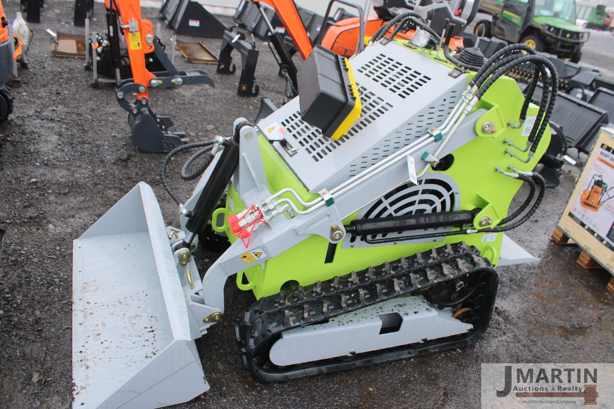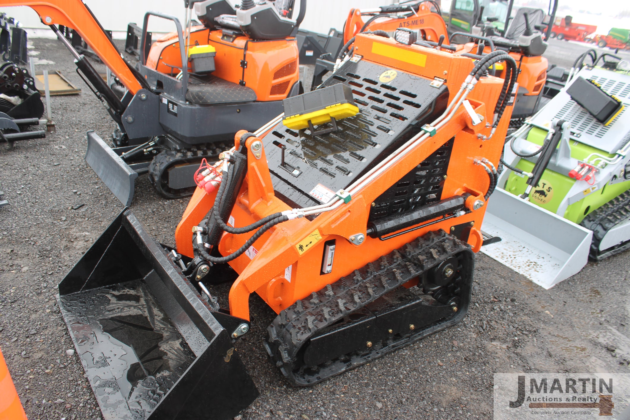 ATS T460 stand on mini track skid loader w/ Zonsen GB680 gas engine, aux hyd, 7” rubber tracks, 43.5” bucket, green/ gray