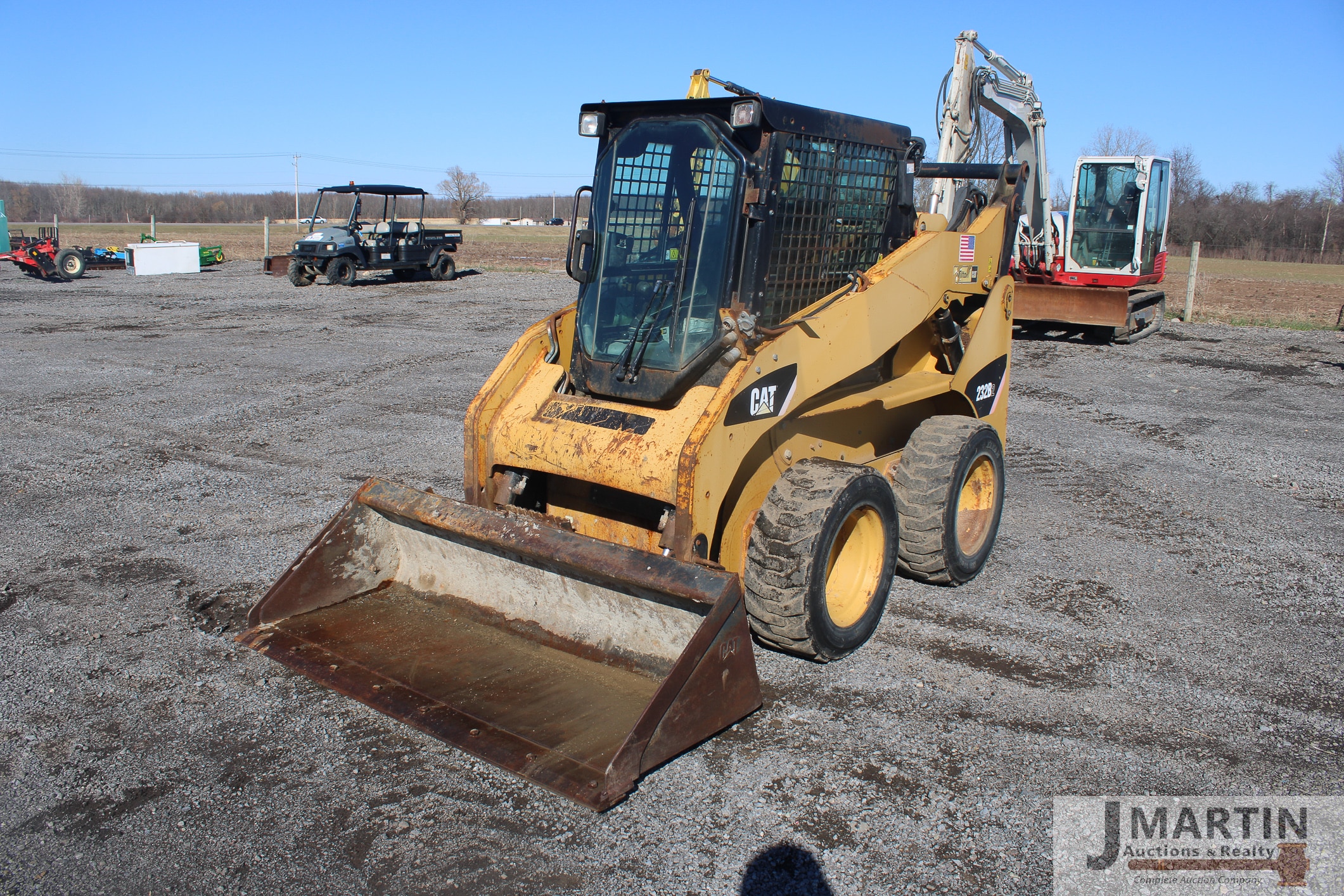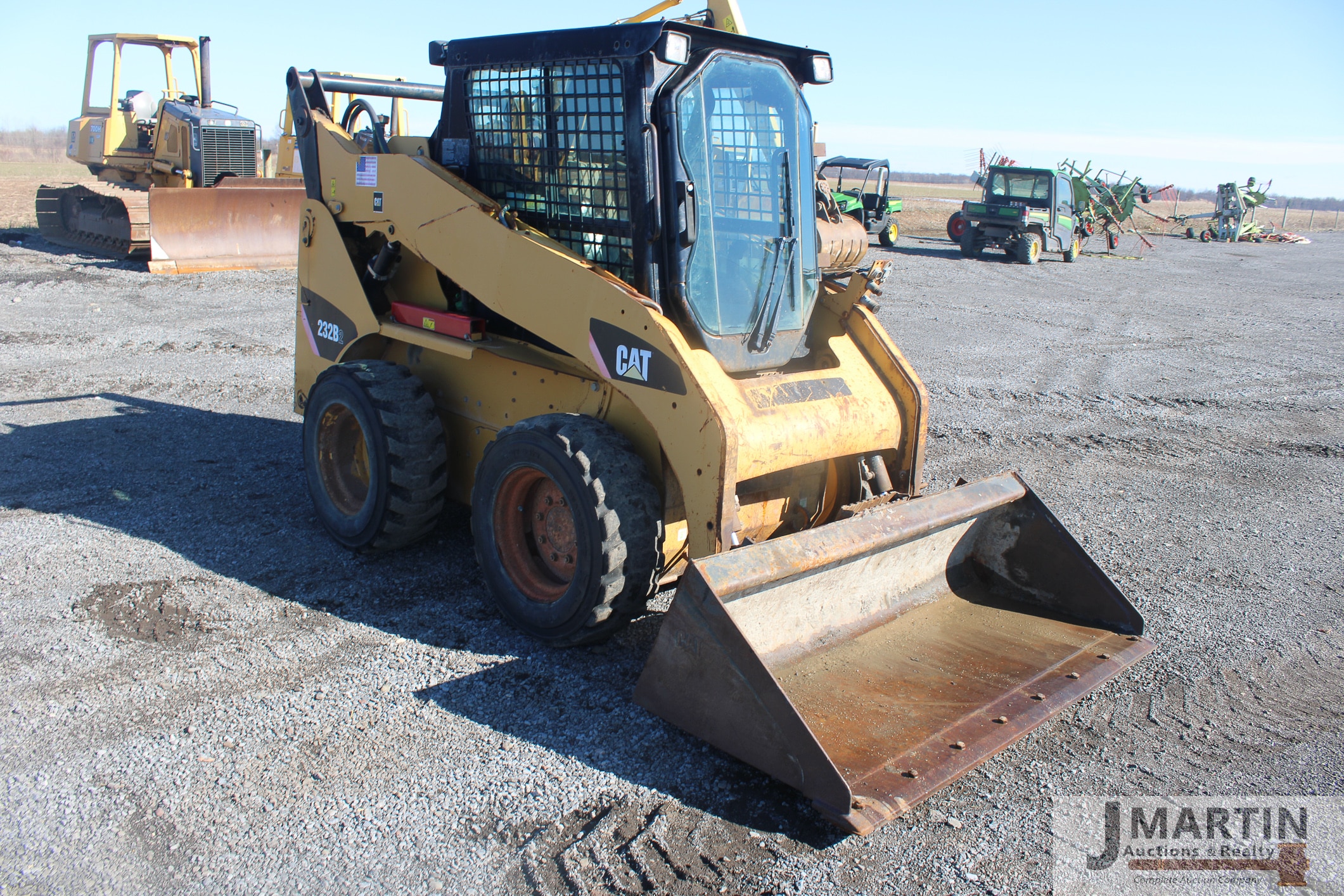 Cat 232B2 skid loader w/ 5515hrs, cab w/ heat, pilot controls, foot throttle, aux hyd, manual quick att, single spd