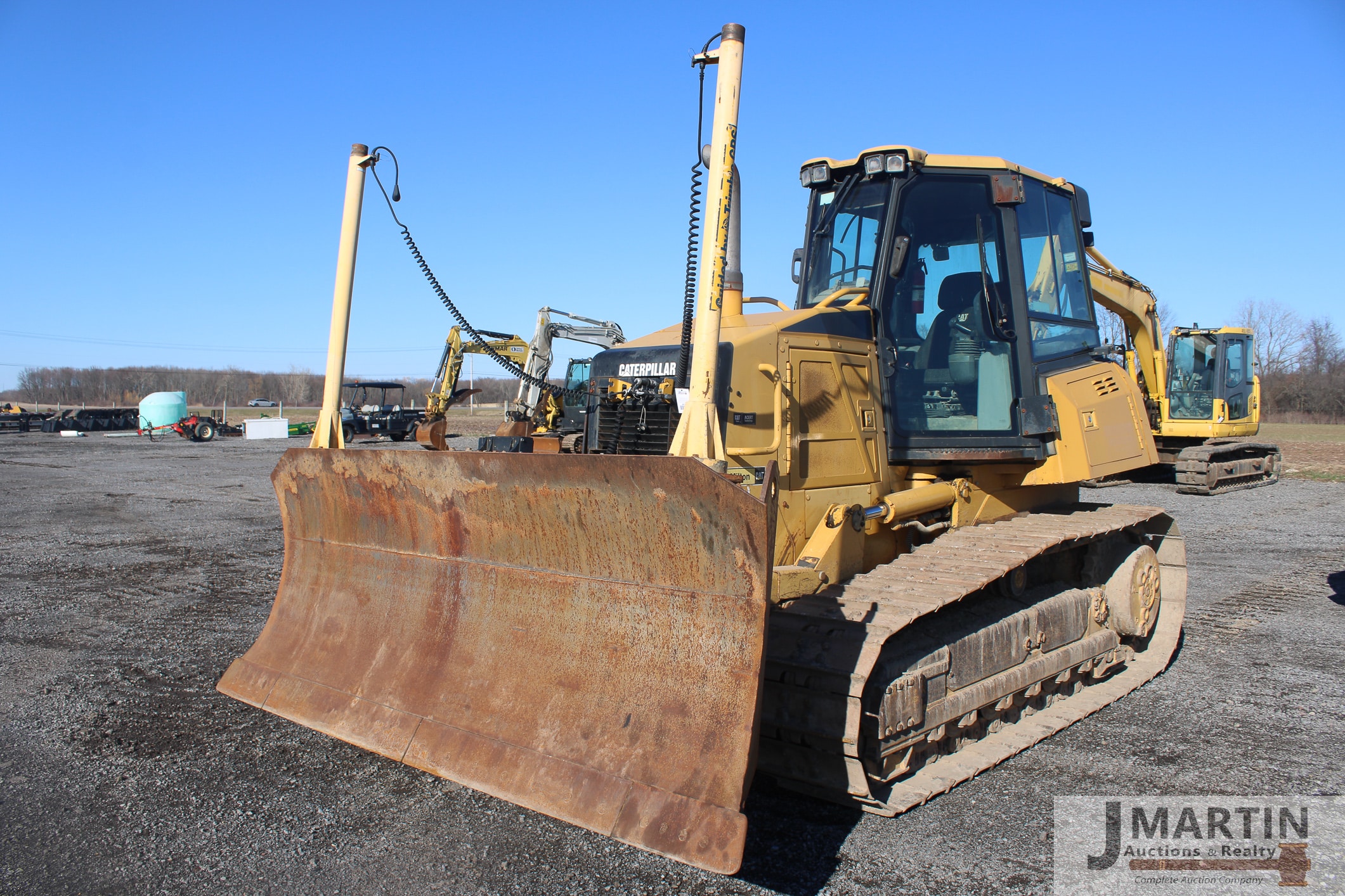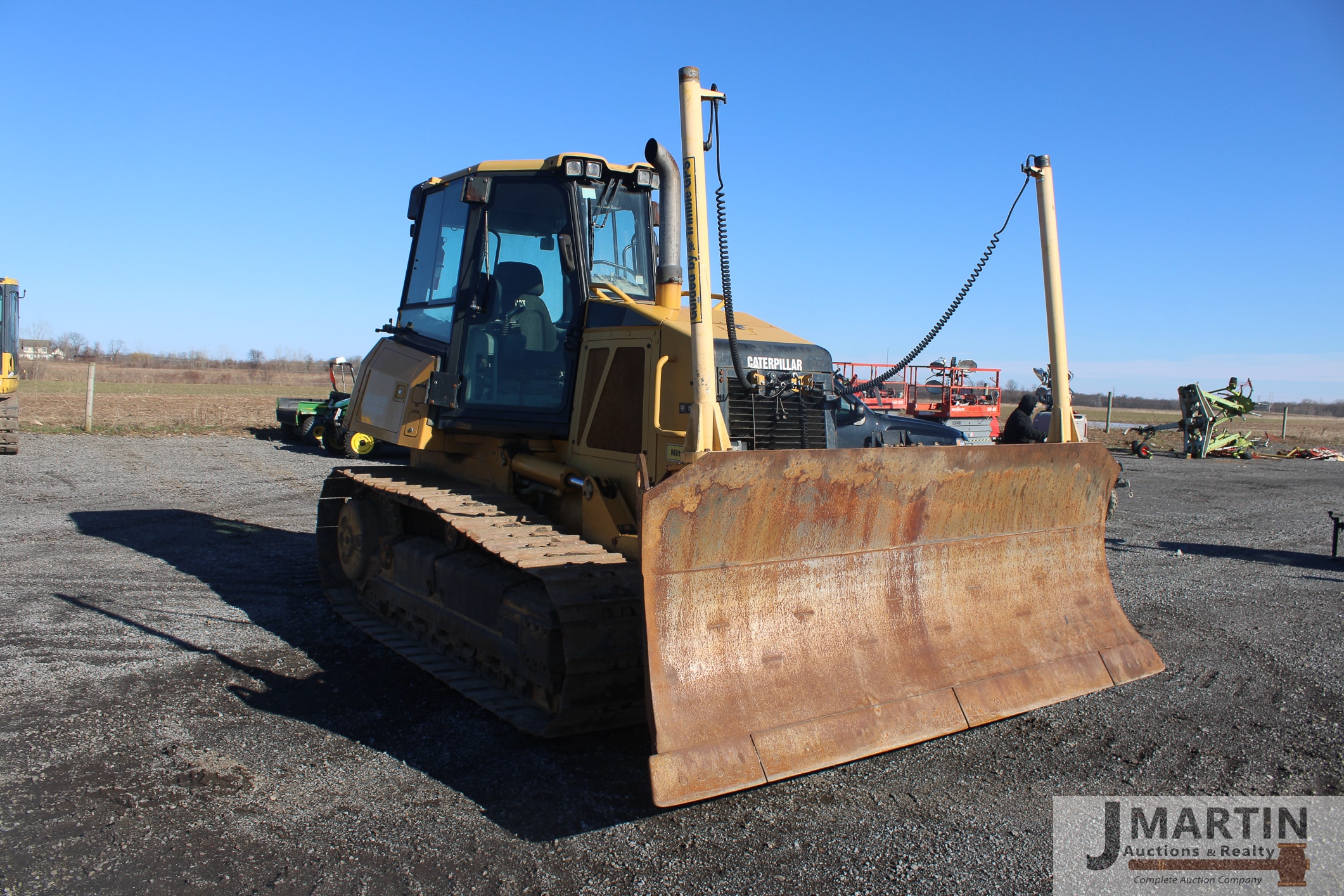 2009 Cat D6K XL dozer w/ 8563hrs, cab w/ heat/ air, Cat 6.6L 6cyl engine, variable spd drive, joystick controls, 2 doors, 9′ 6 way blade, Trimble GPS receiver mounting poles and wiring, rear hitch