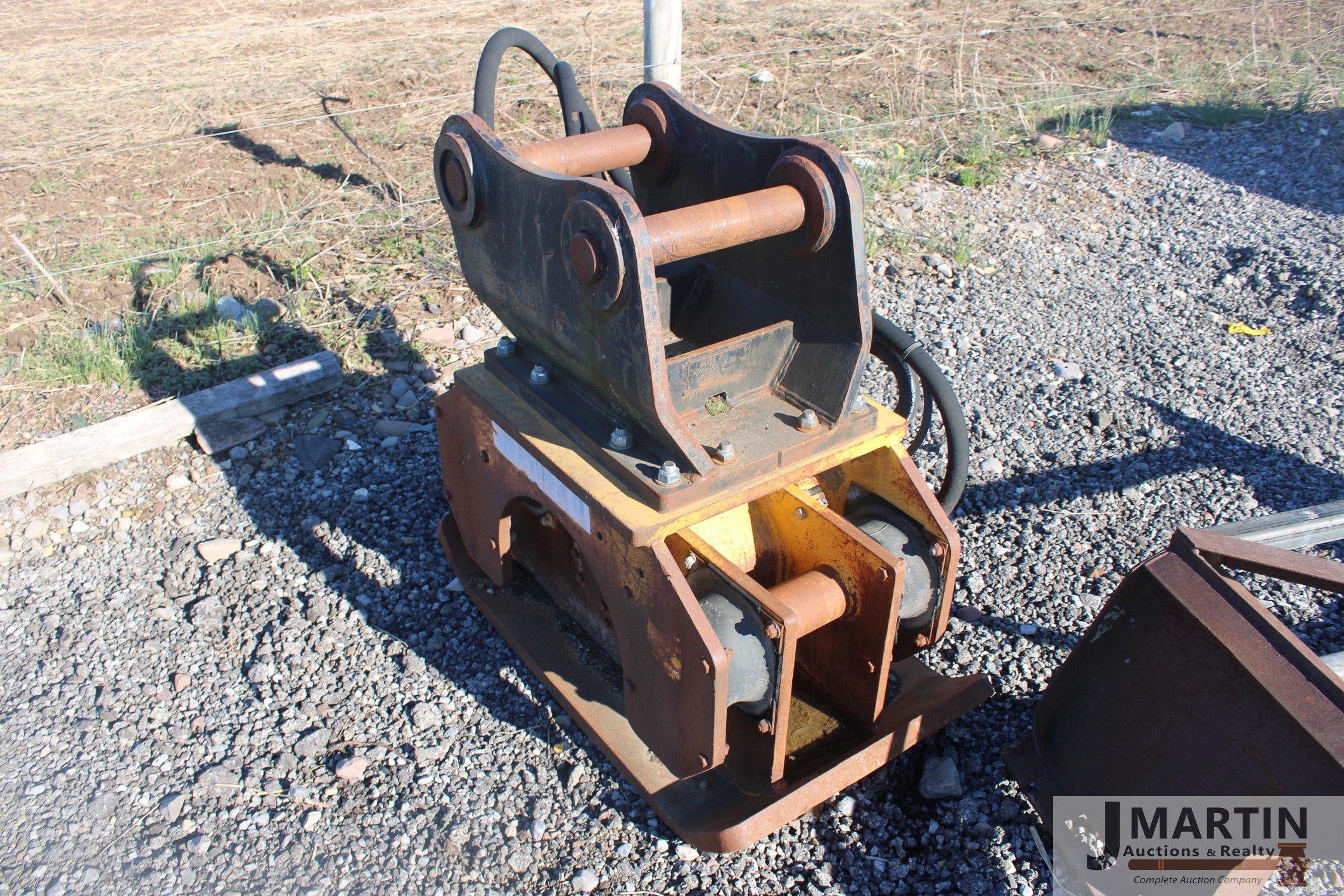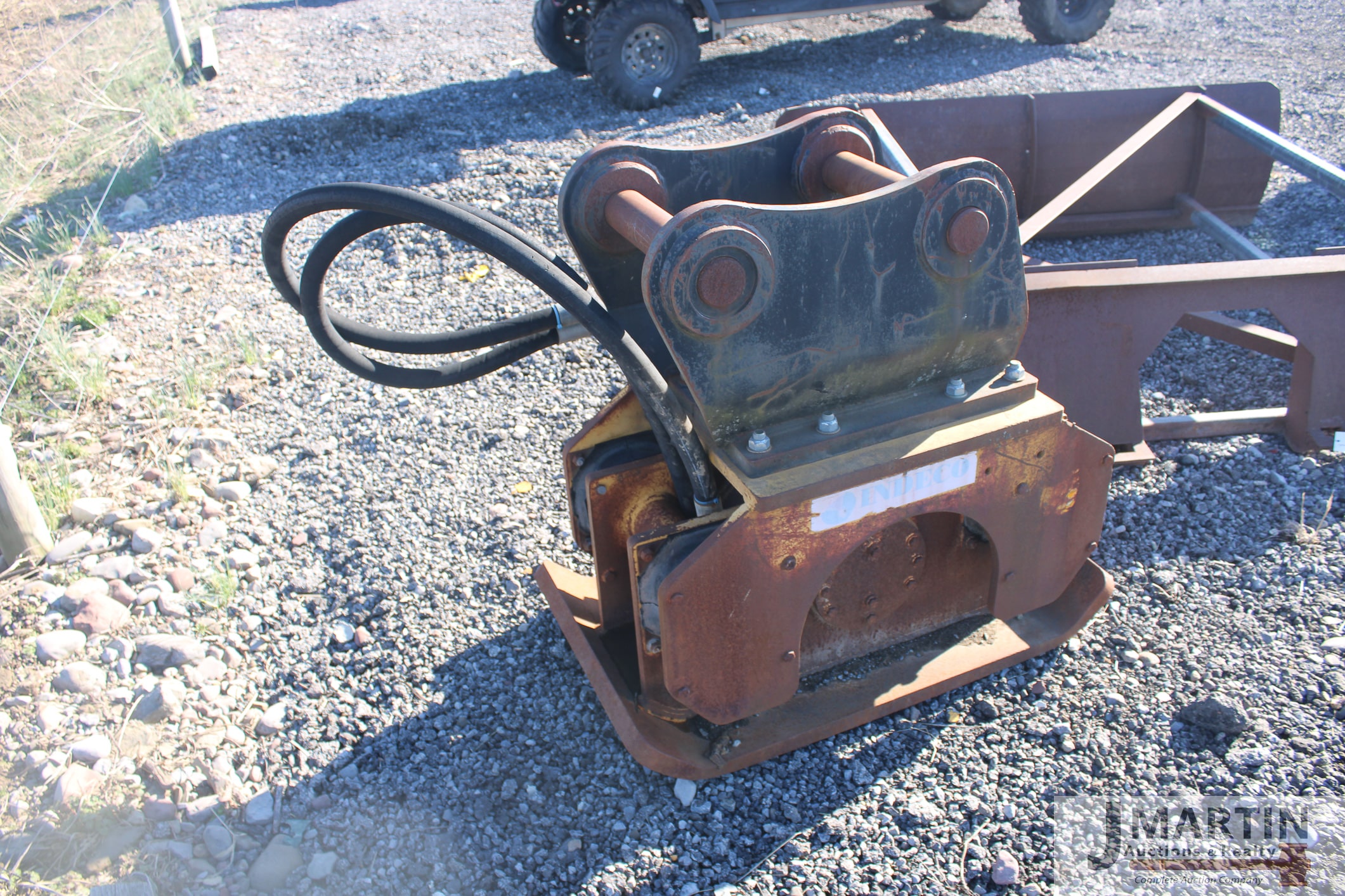 Indeco 23”Wx 40”L excavator plate tamper w/ 23” W x 30” L base size, Komatsu PC150 coupler, 2.75” pins