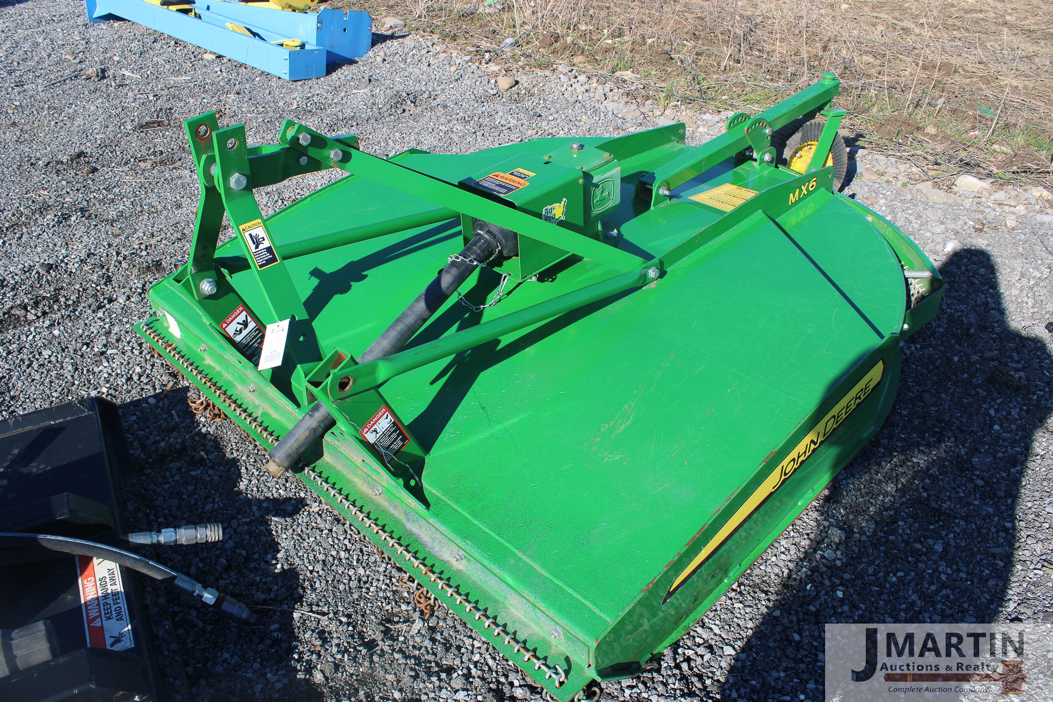 JD MX6 6′ 3pt rotary mower w/ stump jumpers, chain guards