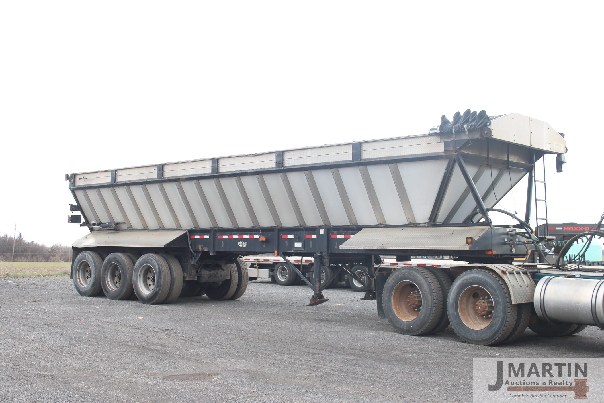 2004 Etnyre 36′ live bottom trailer w/ triaxle, air ride, 40” wide belt, split tail gate, 11R24.5 tires, front to back sliding tarp