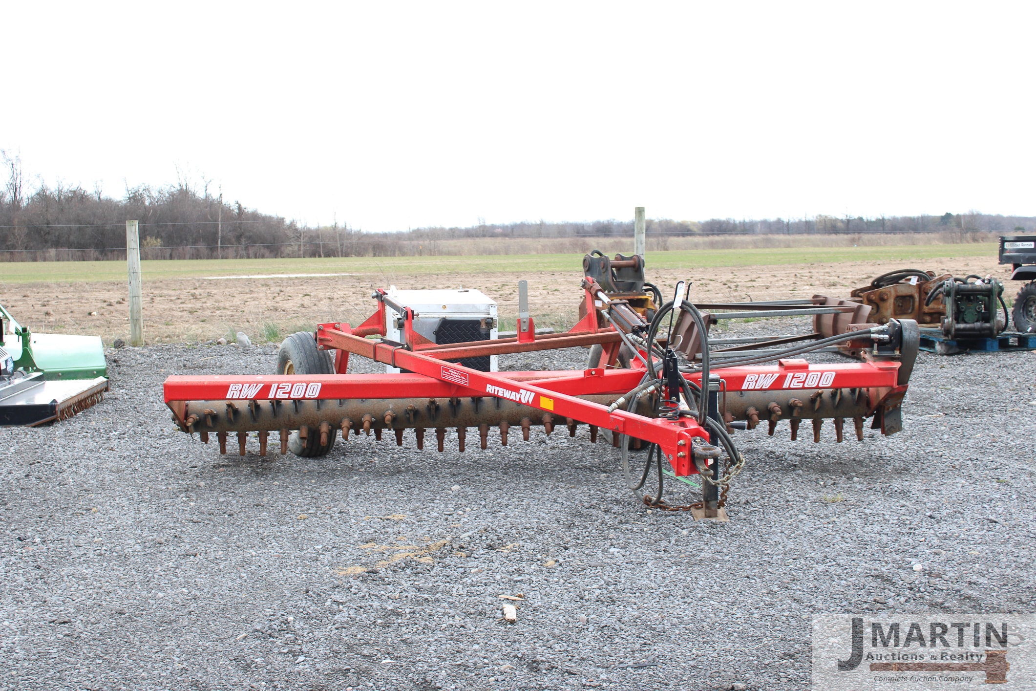 Riteway RW1200 12′ rock rake w/ hyd drive, 5.25” replaceable teeth