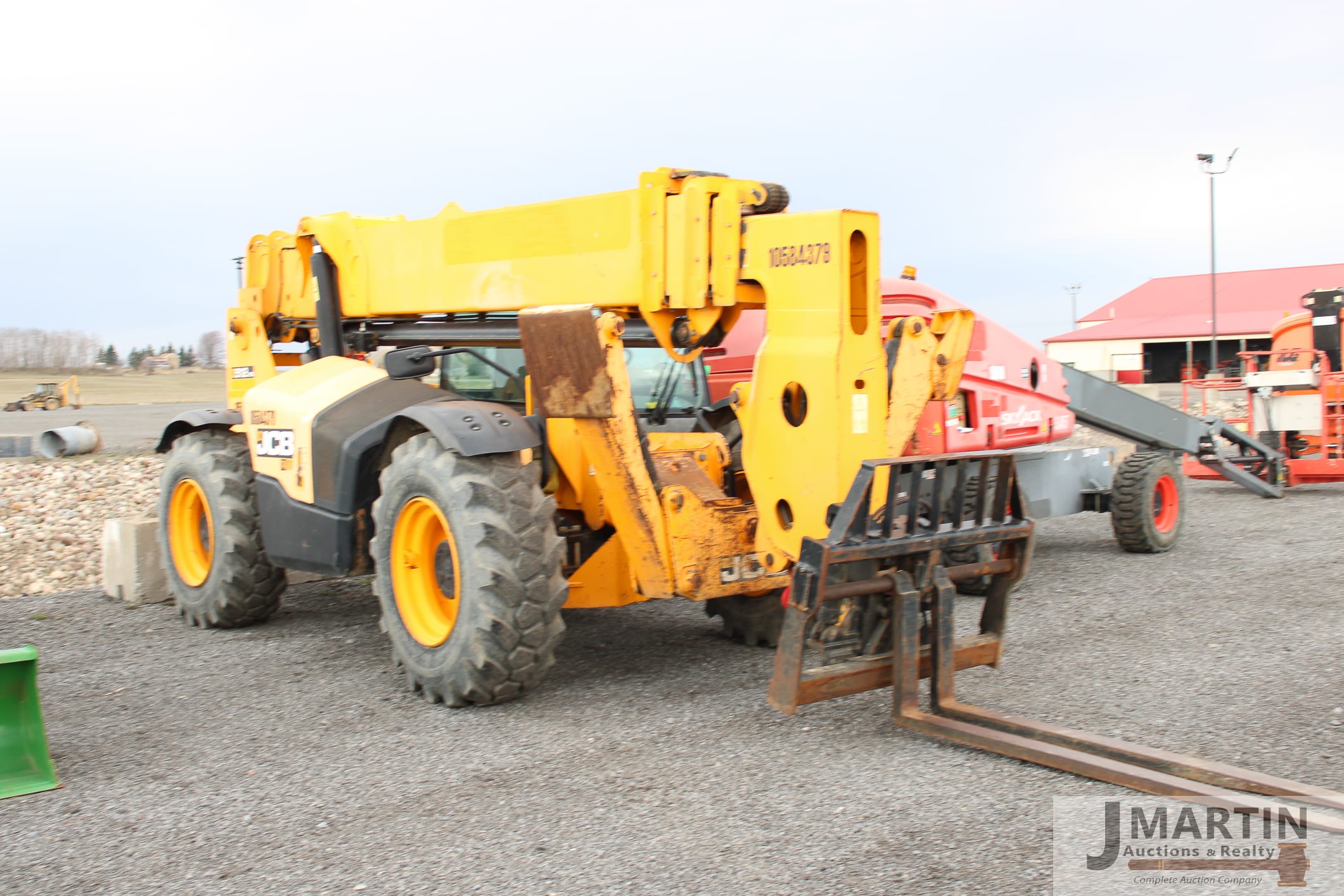 2017 JCB 512-56S telehandler w/ 7179hrs, 12000# cap, 56′ boom, JCB EcoMax diesel engine, powershift trans, EROPS w/ heat/air, machine tilt, fork tilt